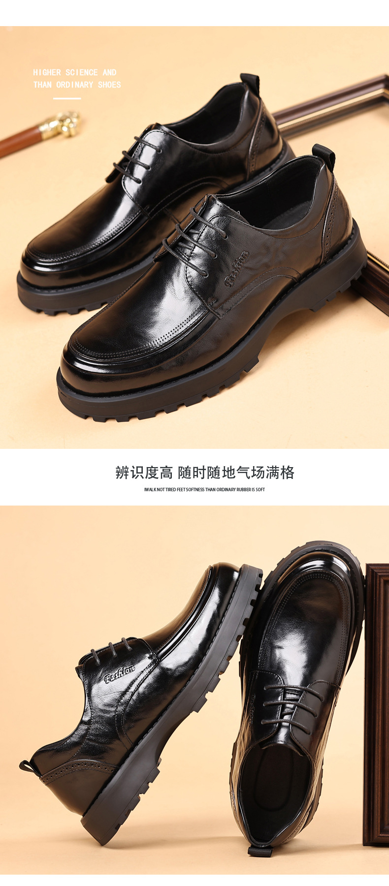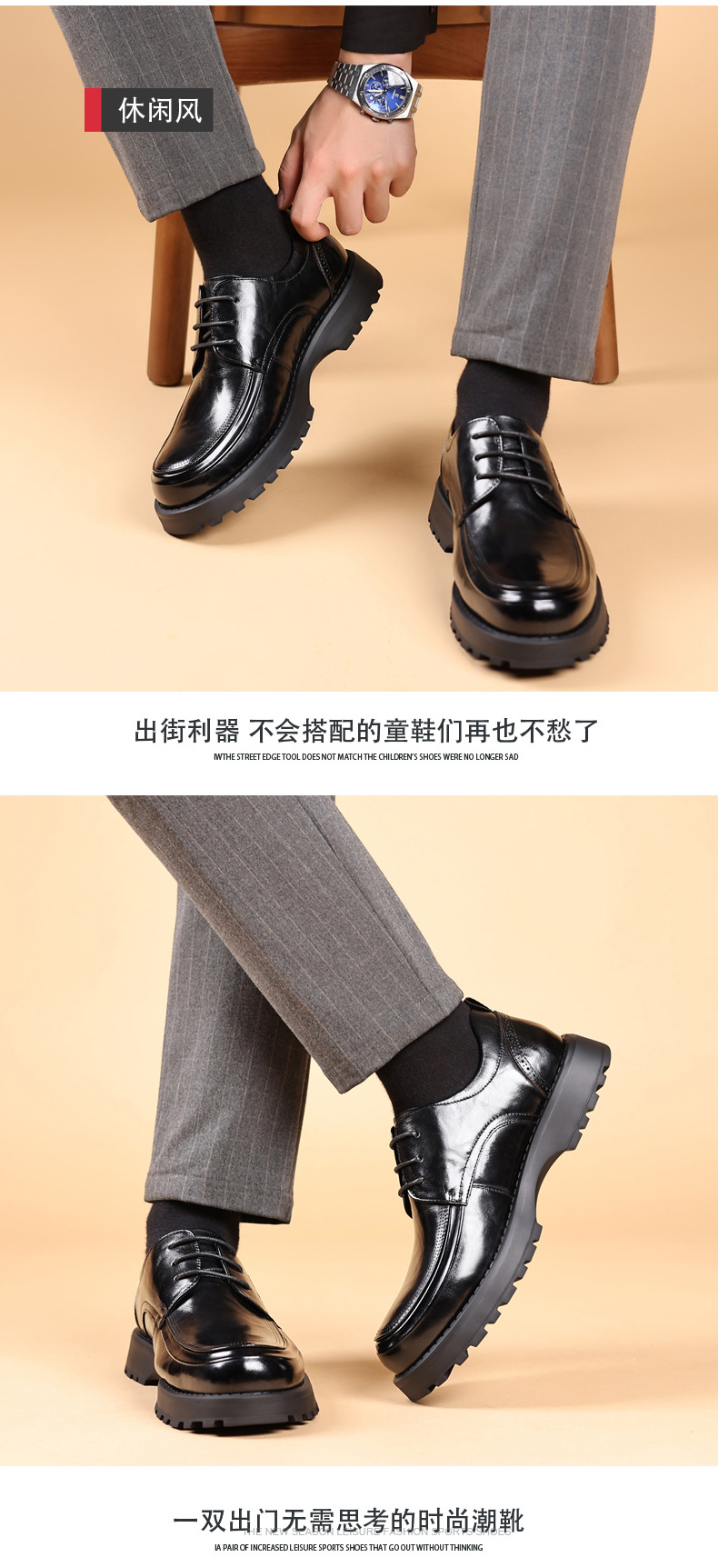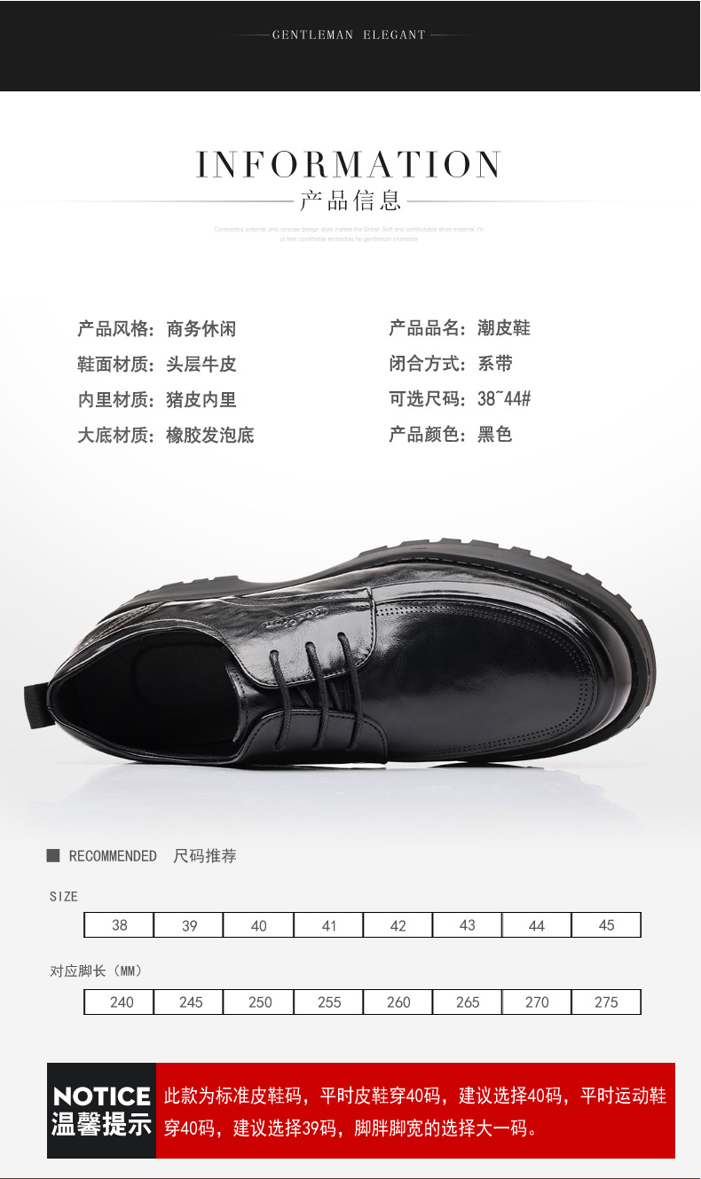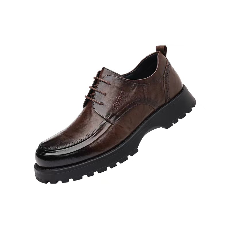 탑 레이어 Cowhide 새로운 남성 비즈니스 캐주얼 가죽 신발 경량 두꺼운 단독 높이 증가 남성 신발 유행 정품 가죽 싱글 신발 남성용스토어 가기