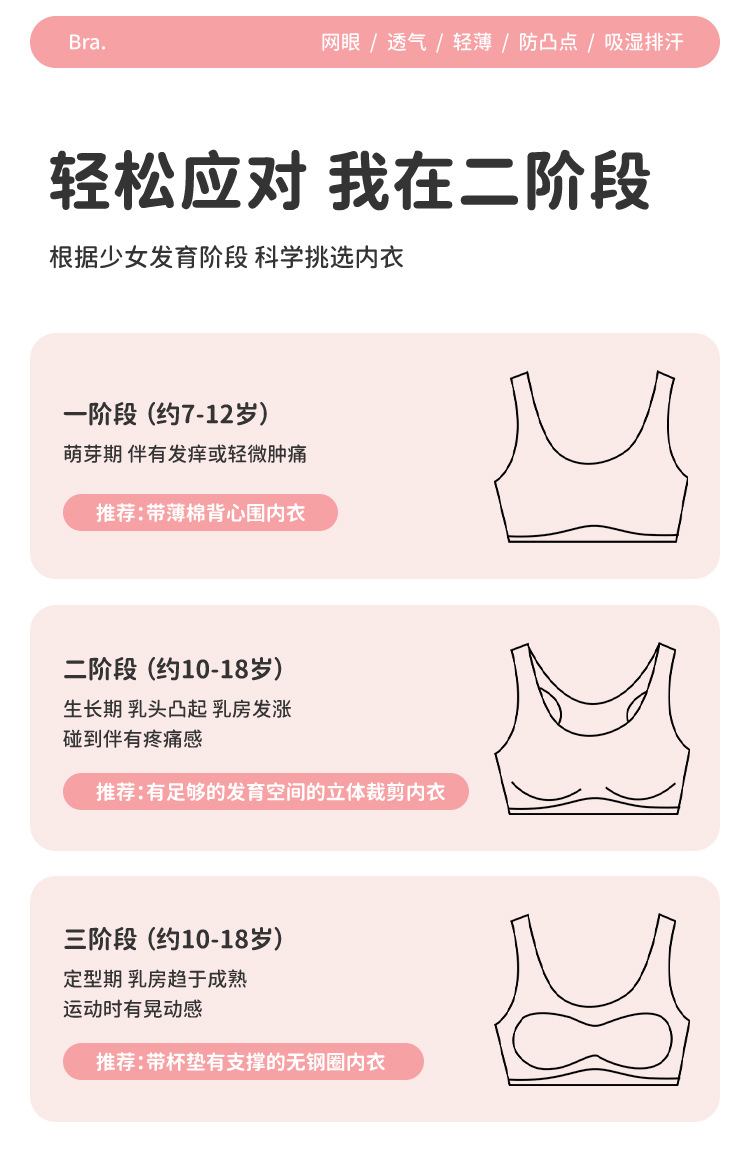 여아 속옷 2 ~ 3 단계 조기 고교생 순면 스포츠 충격 방지 조끼 청소년 소녀 개발 브라스토어 가기