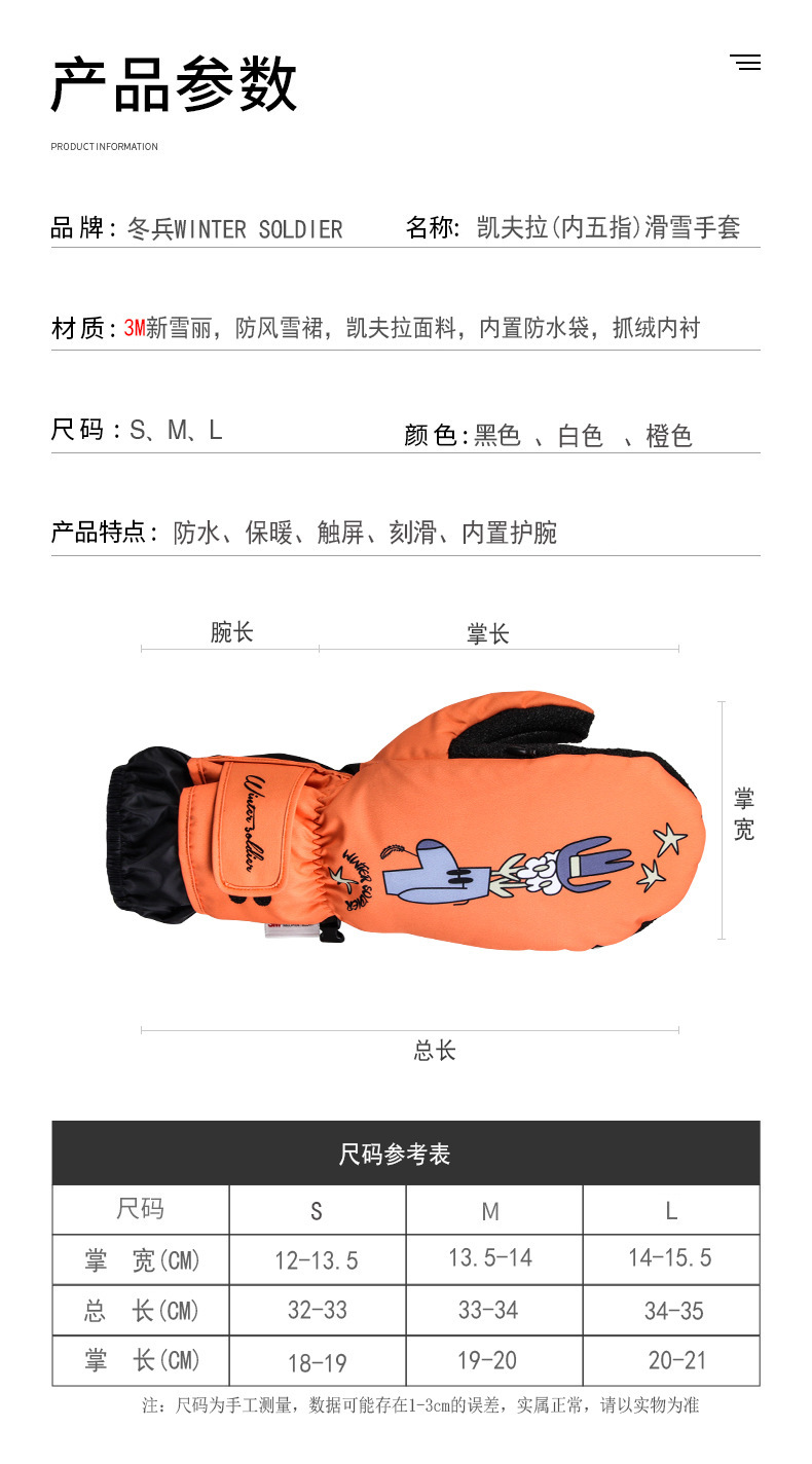 스키 장갑 겨울 남성과 여성 스노우 보드 장갑 방수 내부 다섯 손가락 따뜻한 장갑 스키 스포츠 장갑
