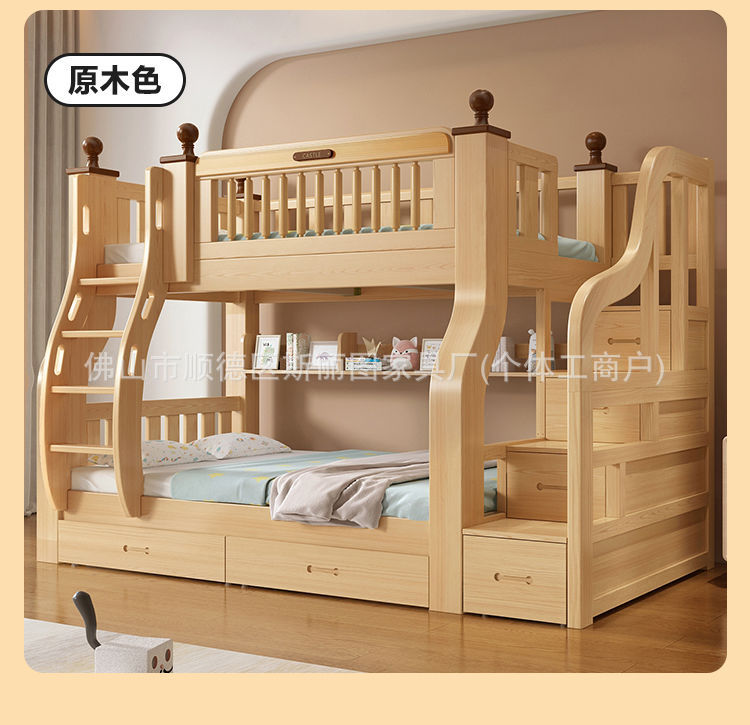 솔리드 우드 벙크 침대 벙크 침대 성인 하이 로우 침대 벙크 침대 작은 아파트 어린이 침대 조합 다기능 어린이 침대스토어 가기