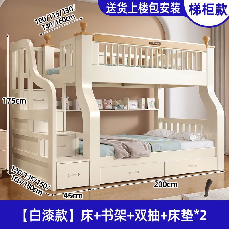 • 흰색 페인트 이중 사다리 + 책장 + 서랍 + 매트리스 + 설치