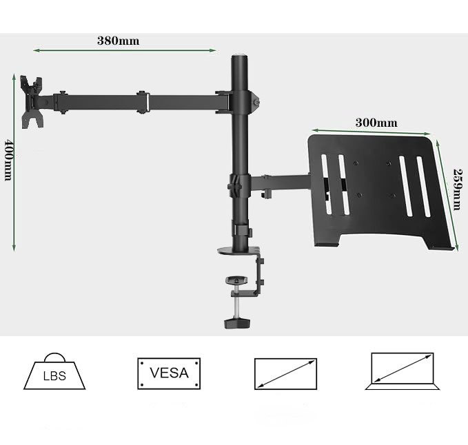 Kehao 범용 조정 가능한 노트북 모니터 2-in-1 브래킷 암 VESA 마운트 노트북 트레이