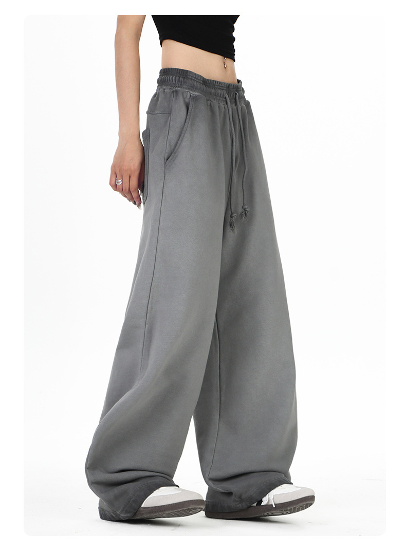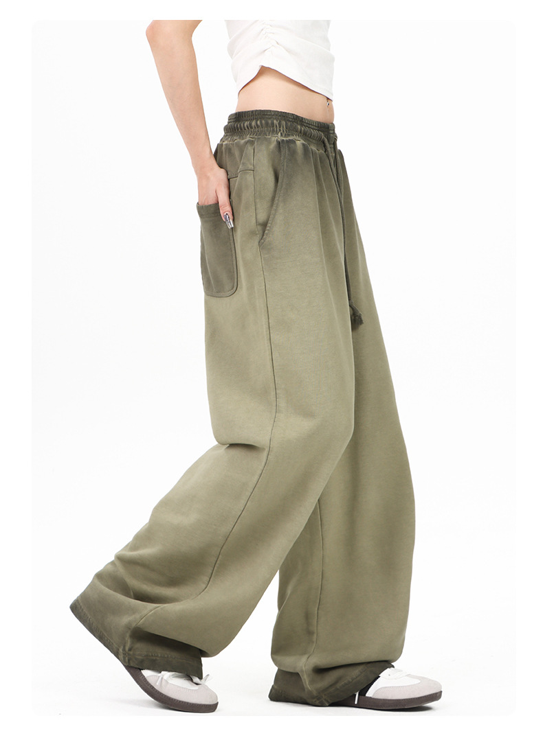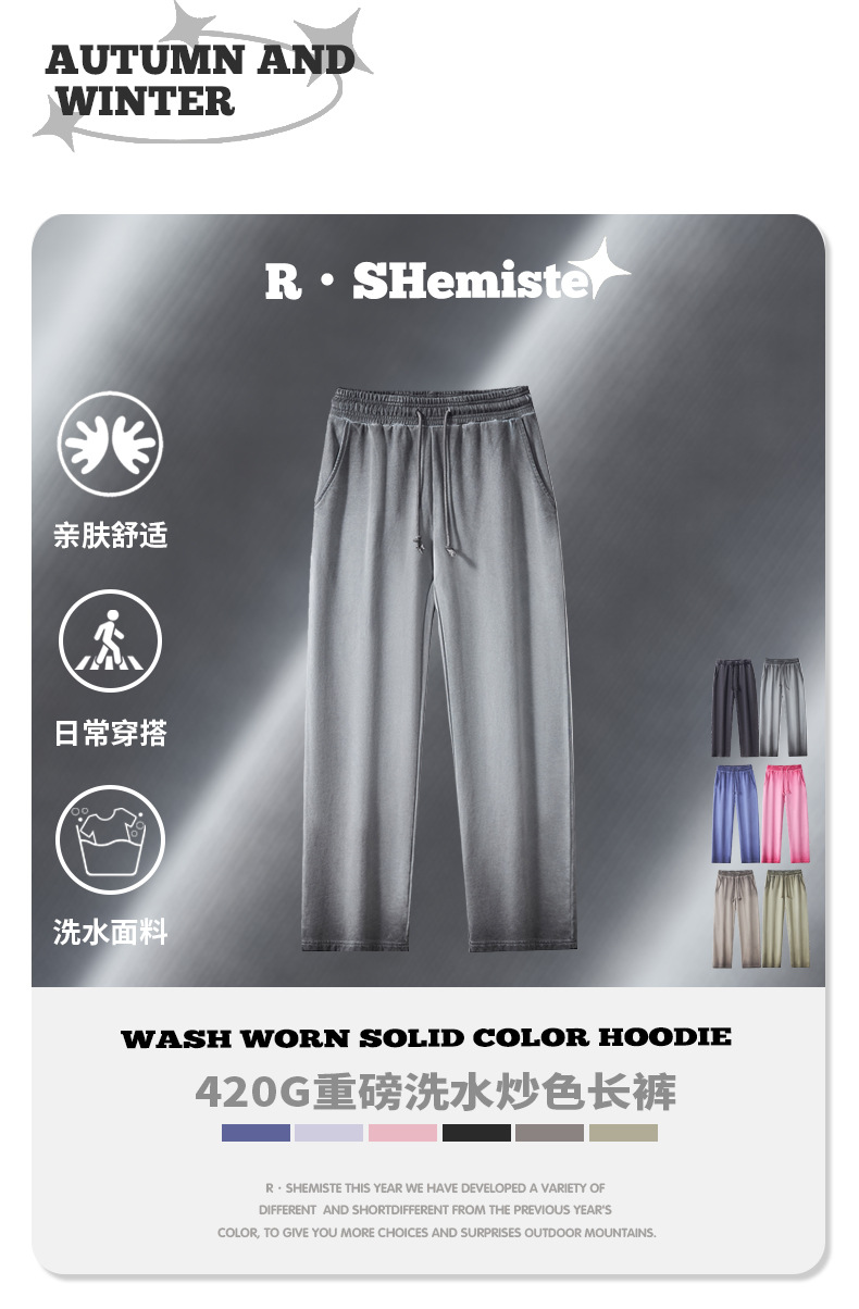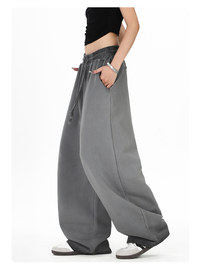 【39.9위안】420G 헤비 워싱 빈티지 루프스웨트 남성 와이드 팬츠 트렌디 브랜드 순면 남성 캐주얼 팬츠
