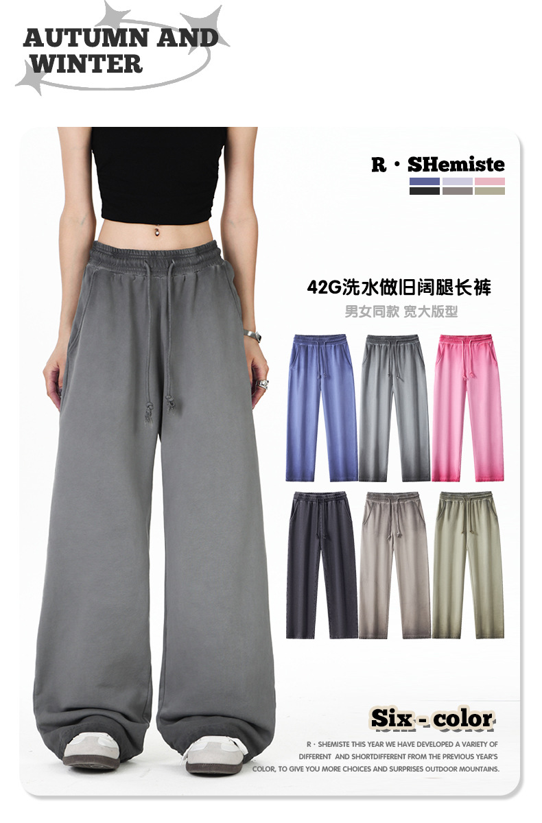 【39.9위안】420G 헤비 워싱 빈티지 루프스웨트 남성 와이드 팬츠 트렌디 브랜드 순면 남성 캐주얼 팬츠스토어 가기