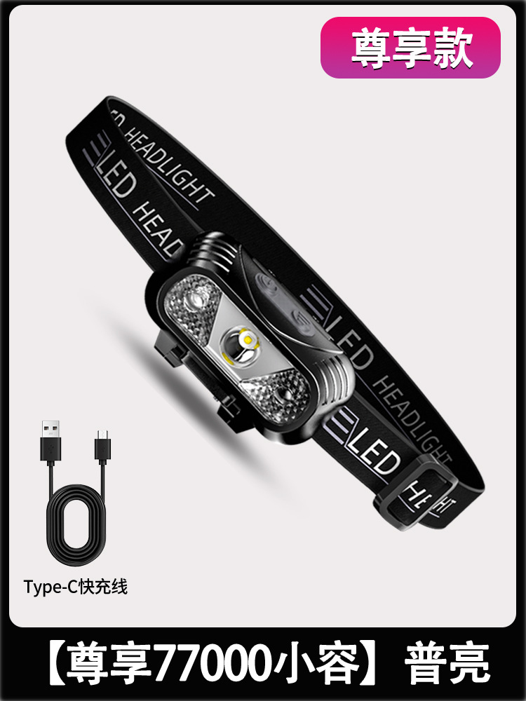 새로운 LED 헤드라이트 흔들림 유도 헤드라이트 USB 충전 헤드 장착 야간 달리기 낚시 미니 헤드라이트 도매