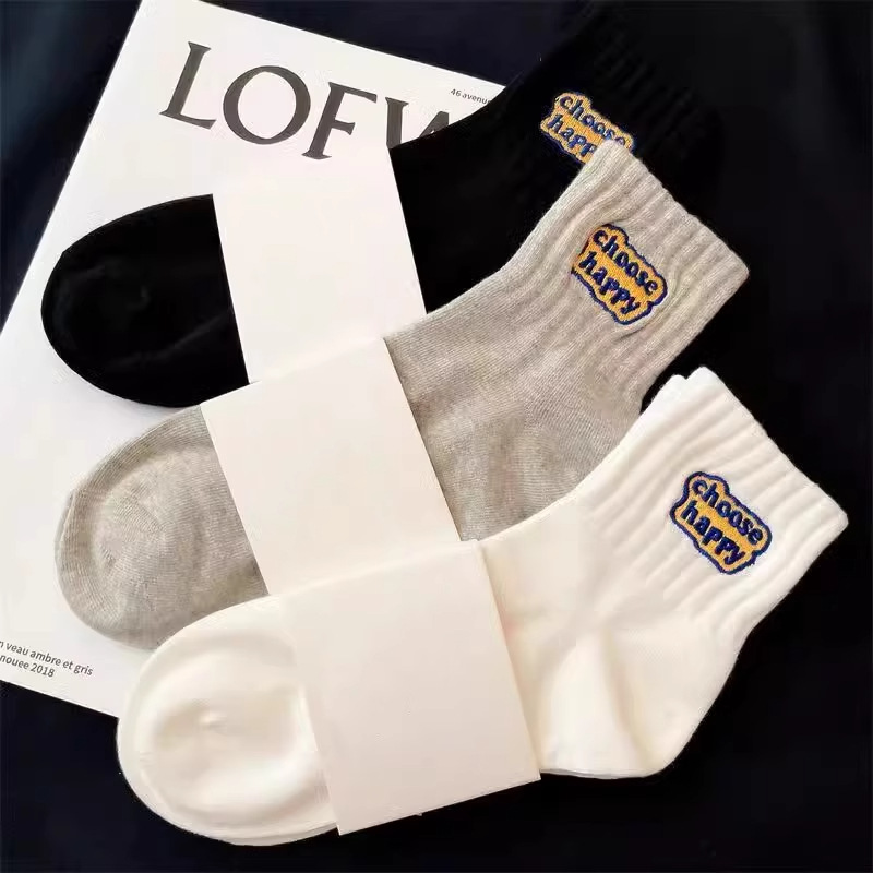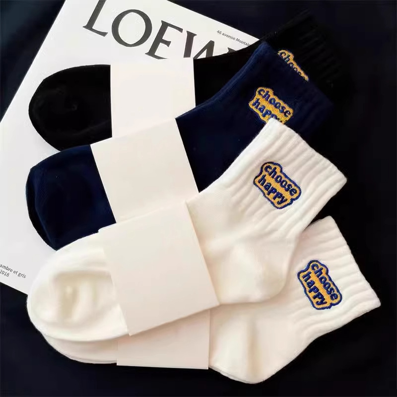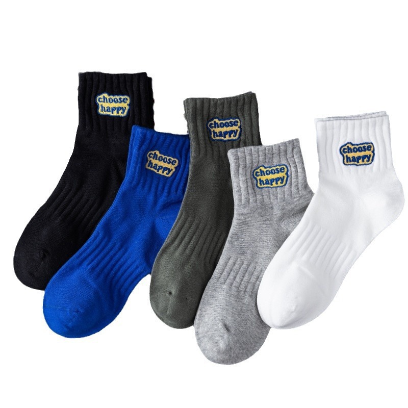 봄, 가을 남성용 새 양말 솔리드 컬러 레터 양말 미드 튜브 양말 땀 흡수, 통기성, 탈취제 및 트렌디한 남성용 스포츠 레터 양말스토어 가기