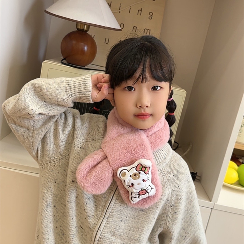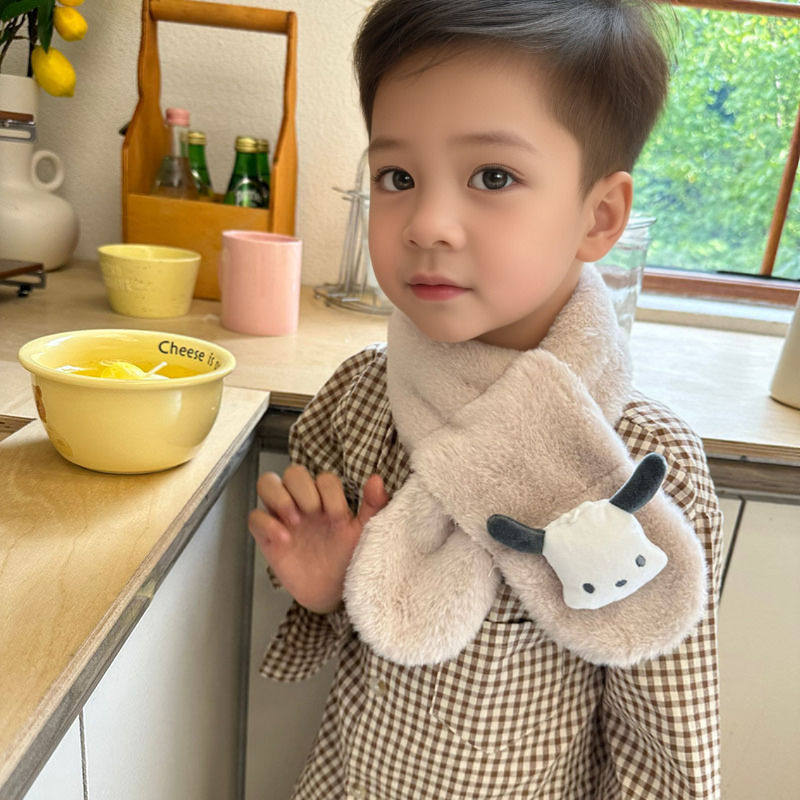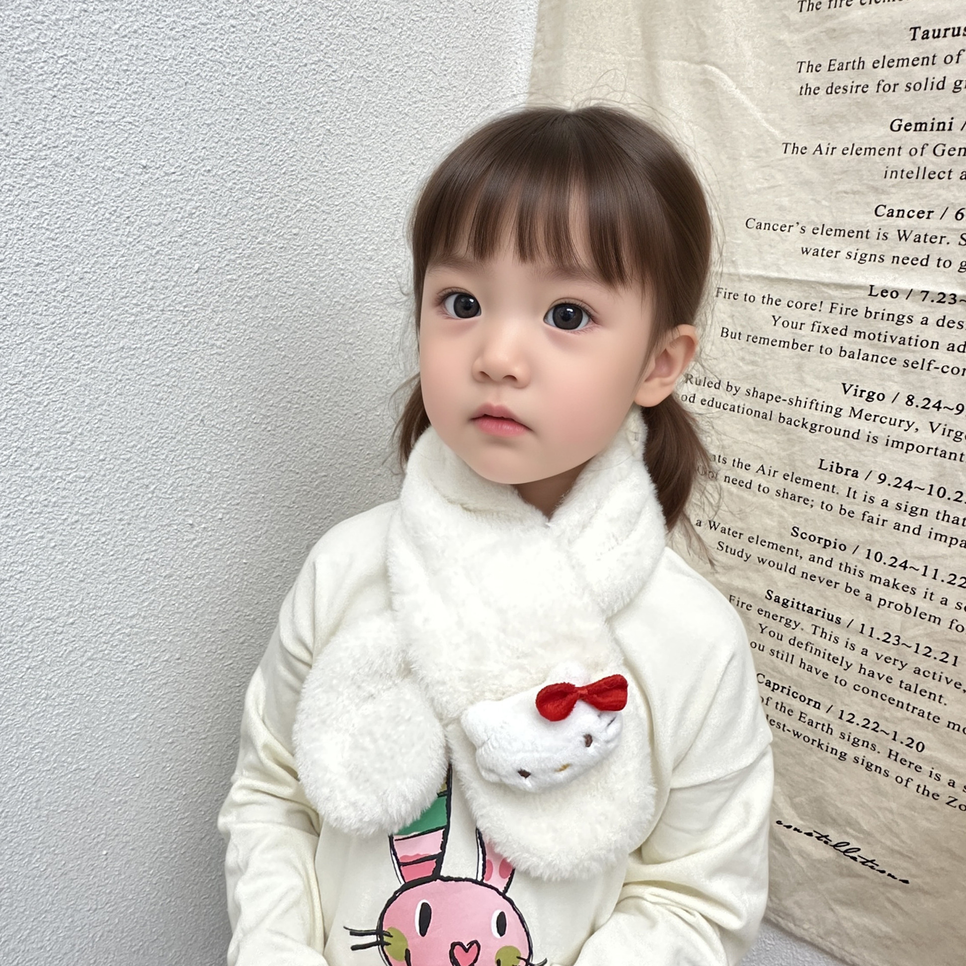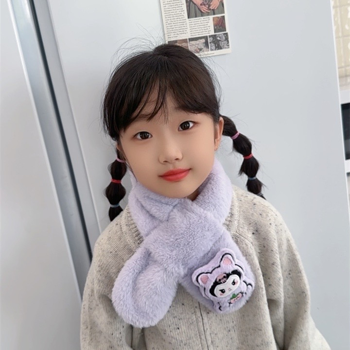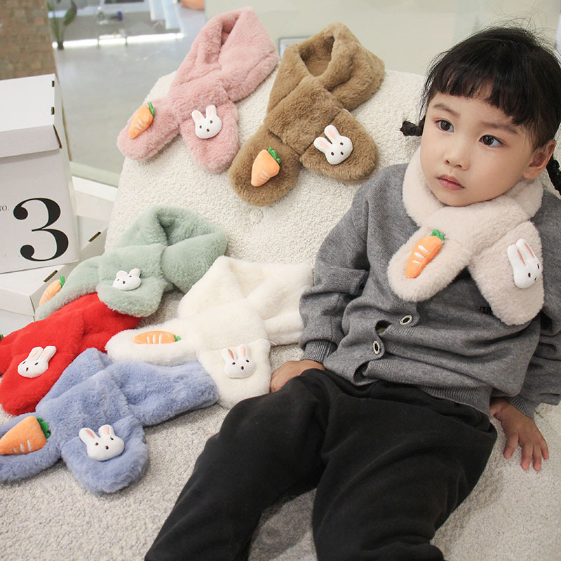 가을 겨울 신상 아동용 스카프, 두꺼운 보온 방풍 인조 토끼털 플러시 만화 부모-자녀 스카프, 아기 목도리스토어 가기