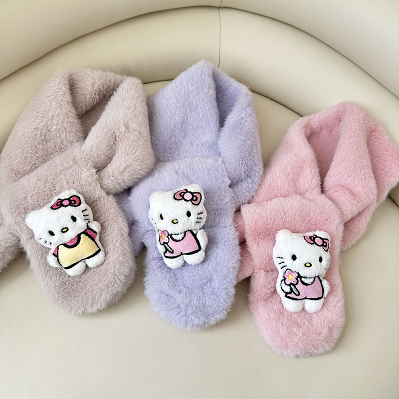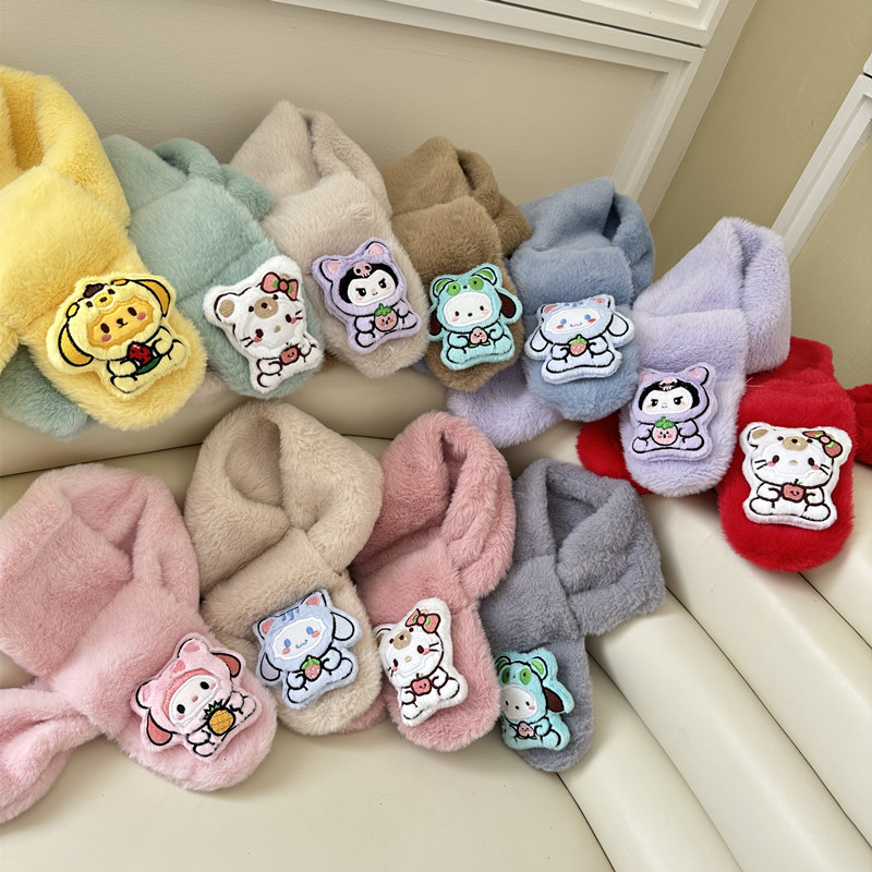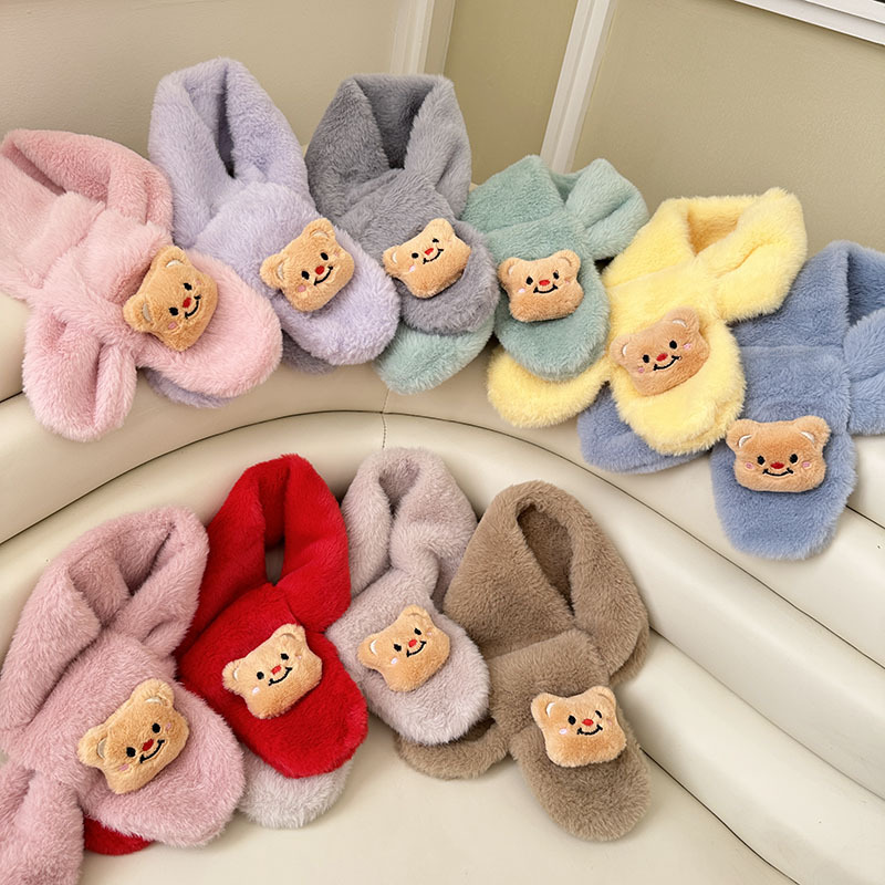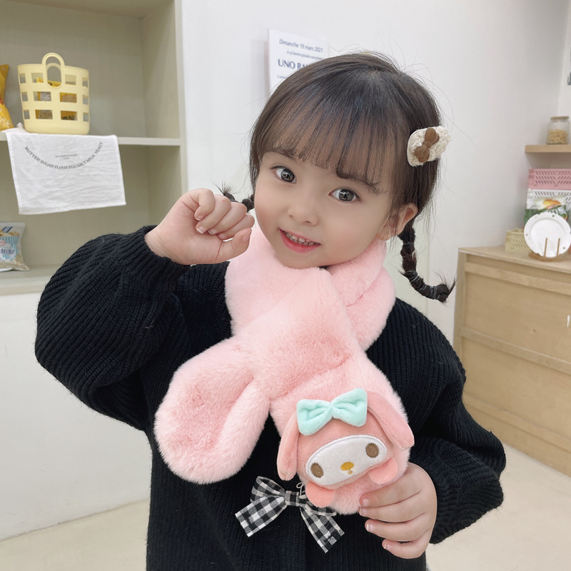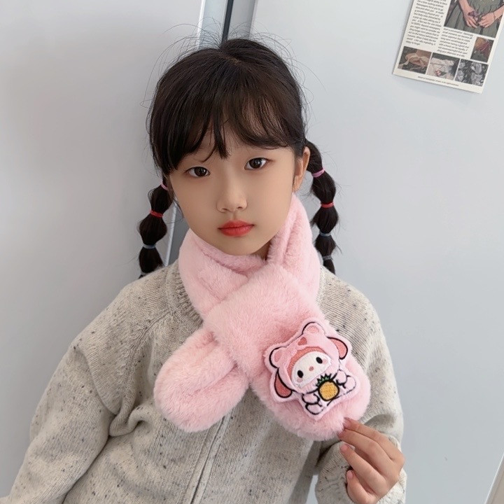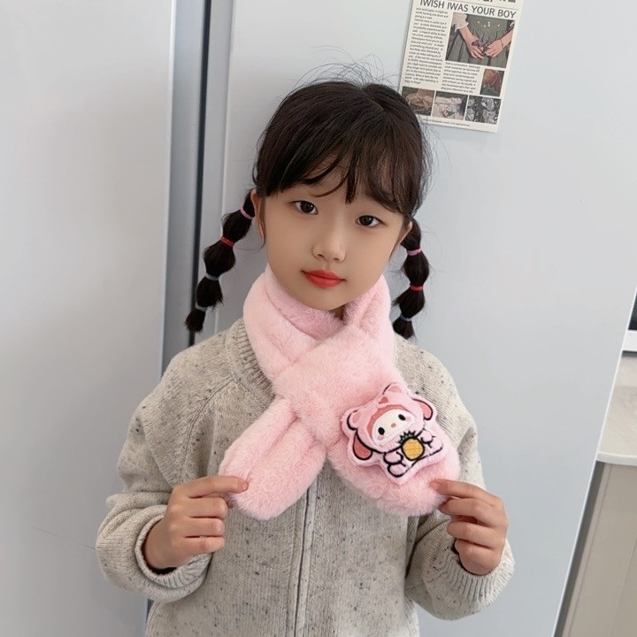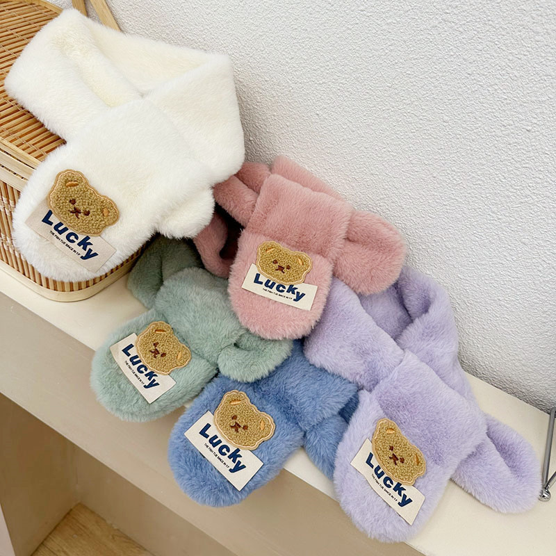 가을 겨울 신상 아동용 스카프, 두꺼운 보온 방풍 인조 토끼털 플러시 만화 부모-자녀 스카프, 아기 목도리스토어 가기