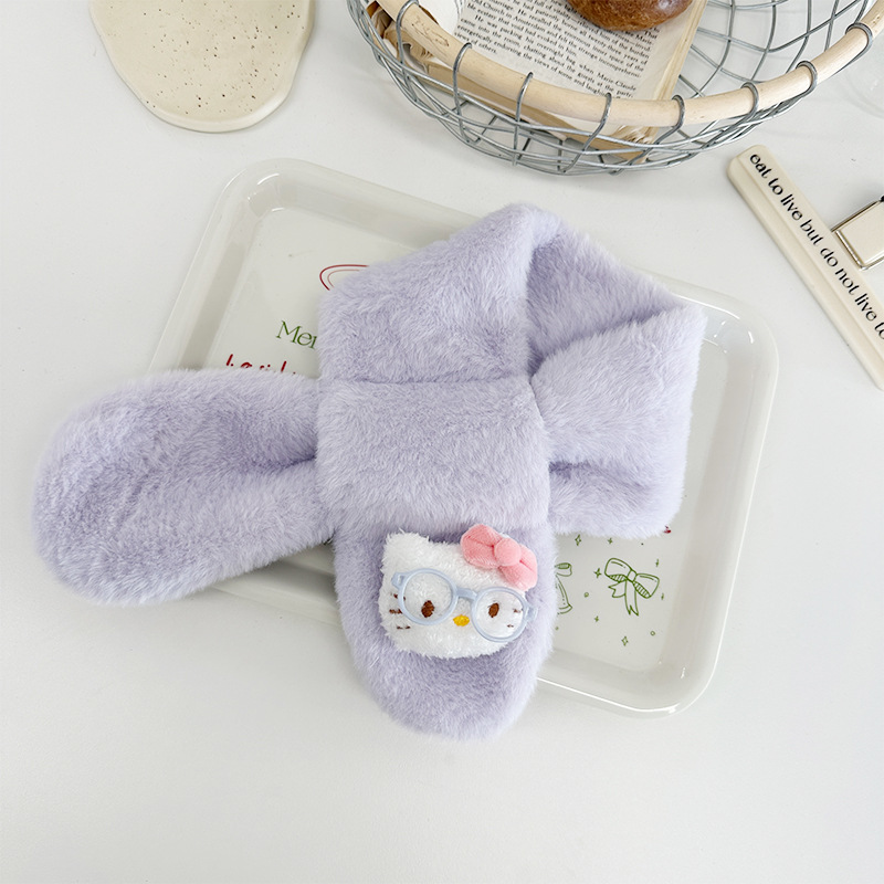 • 어린이 스카프 - 안경 쓴 키티 (보라색)