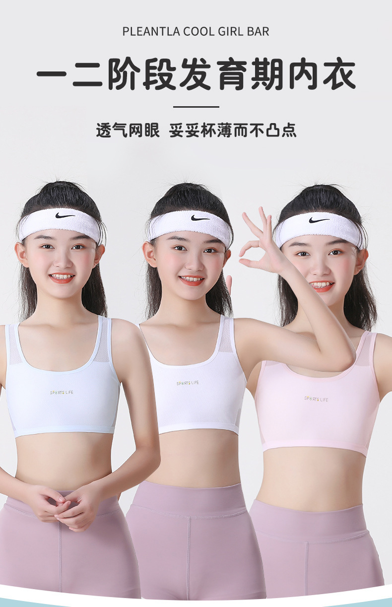 여자 발달 스포츠 속옷 여자 브라 학생의 충격 방지 조끼 큰 어린이, 중학교 및 고등학생을위한 청소년 튜브 탑