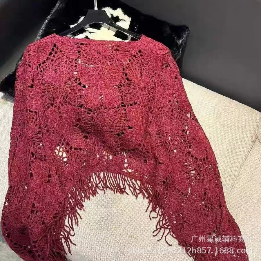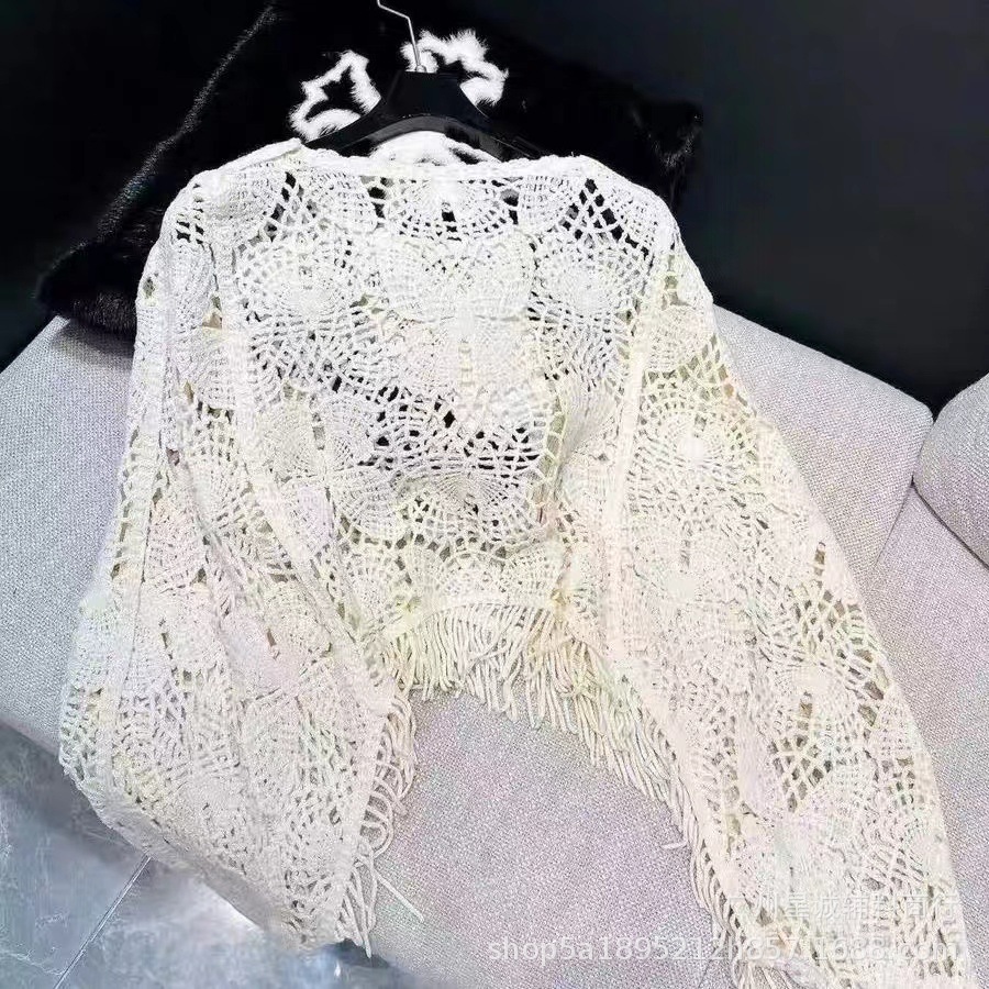 가을 2024 새로운 술 할로우 블라우스 간단한 작은 셔츠 박쥐 소매 느슨한 니트 짧은 상단