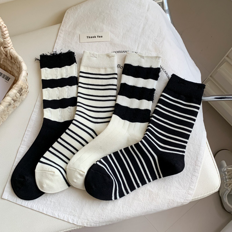 거지 홀 양말 여자 중간 배럴 흑백 줄무늬 거리 유행 양말 가을 및 겨울 올 매치 스택 양말 맞춤형 스타킹스토어 가기