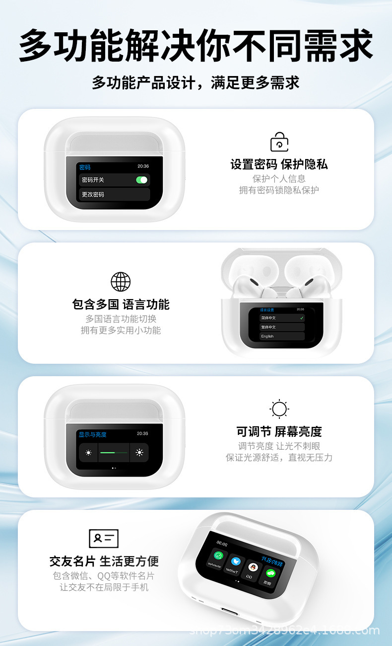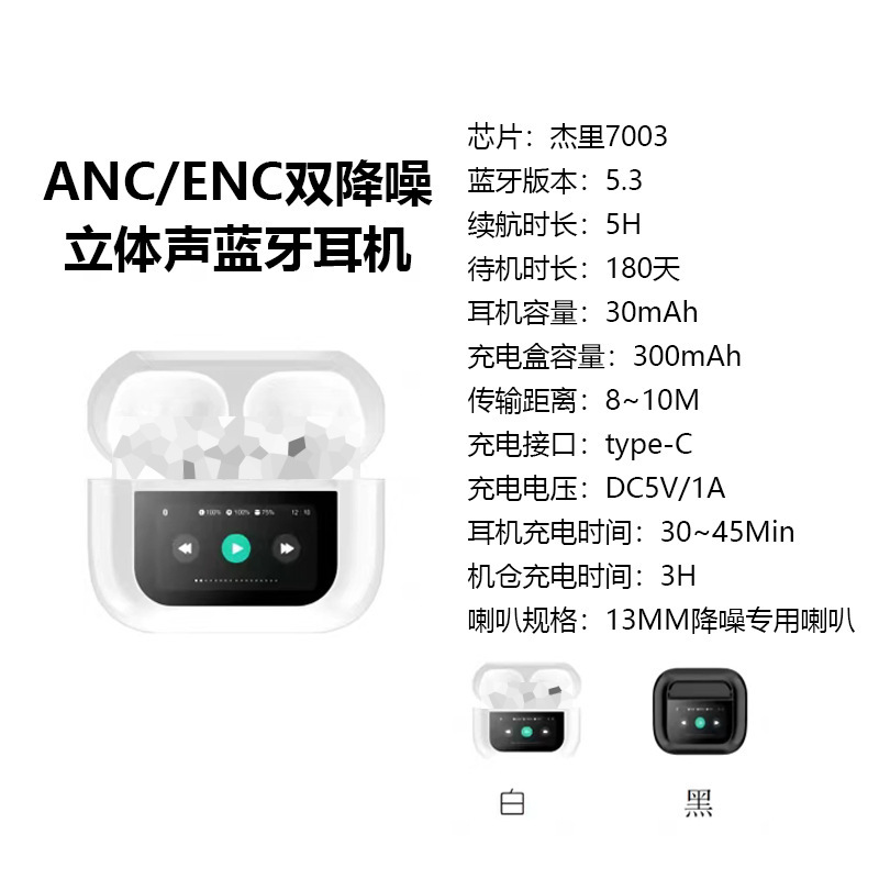 新款V8、A8pro、A9pro、A10pro、五代、wt-2降噪蓝牙耳机定制logo跨境外贸亚马逊ENC/ANC降噪蓝牙耳机无线长续航入耳LCD触屏全彩屏商务运动耳机tws华强北耳机深圳数码适用jbl苹果华为
