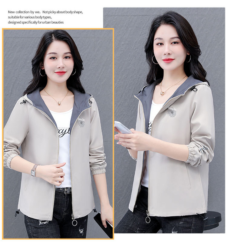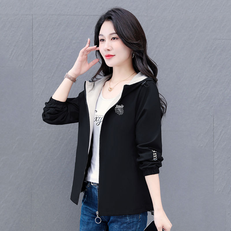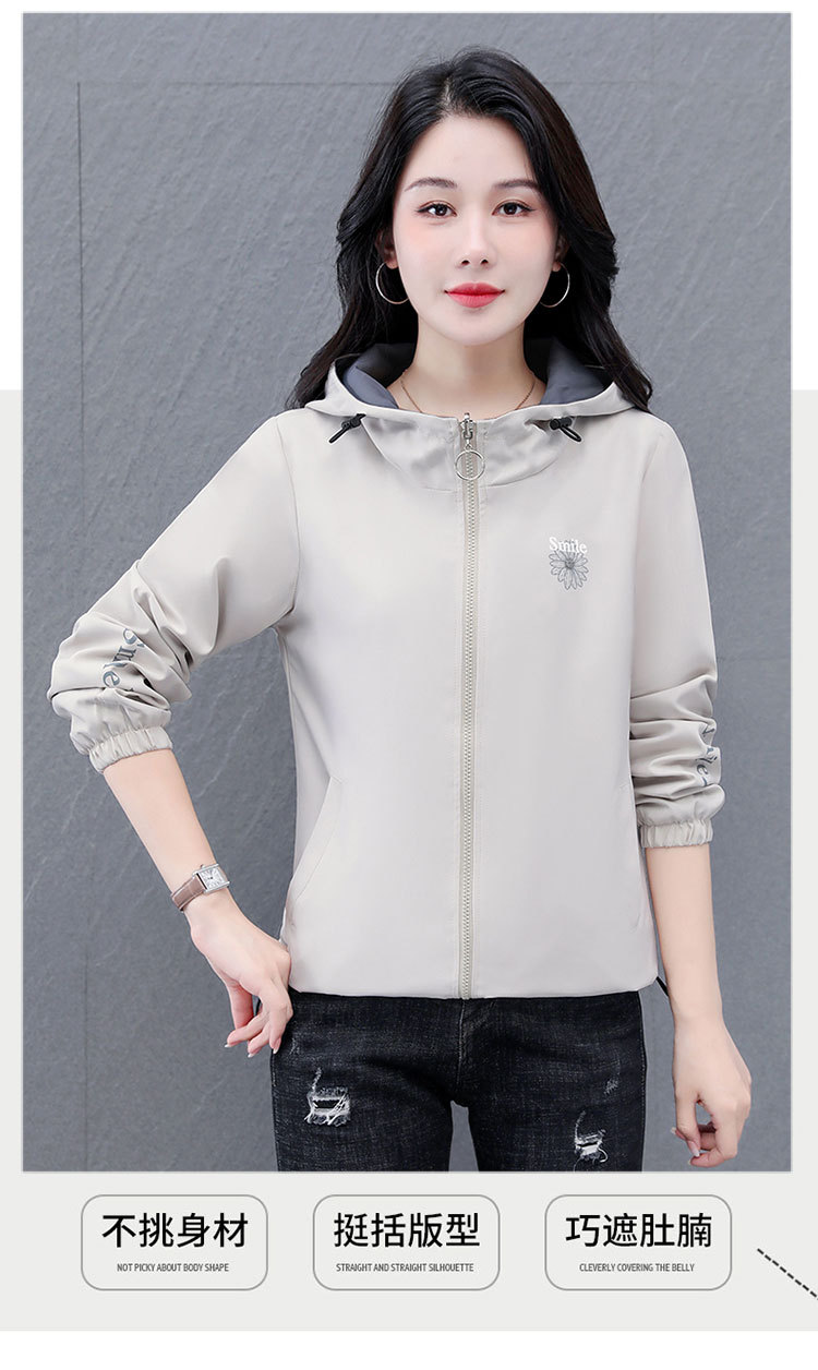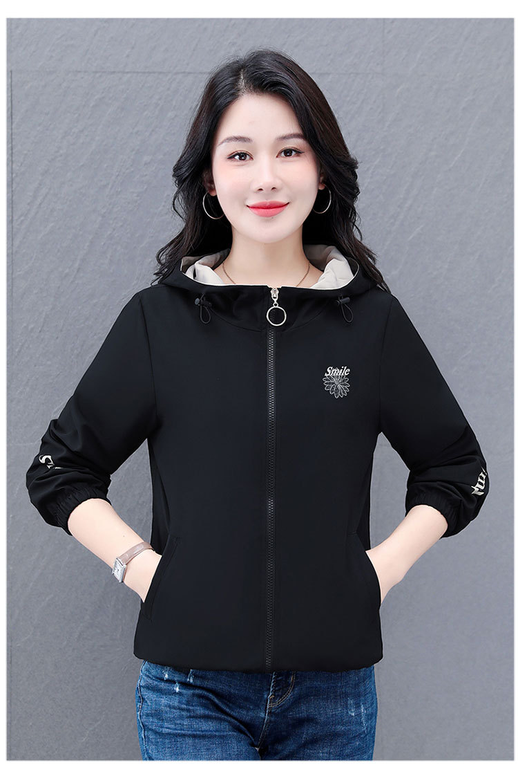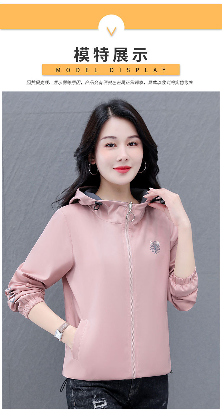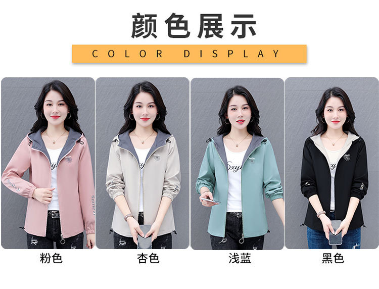 가을 2024 새로운 색상 대비 후드 재킷 짧은 코트 여성 중년 어머니 단순 느슨한 올매치 지퍼 카디건스토어 가기