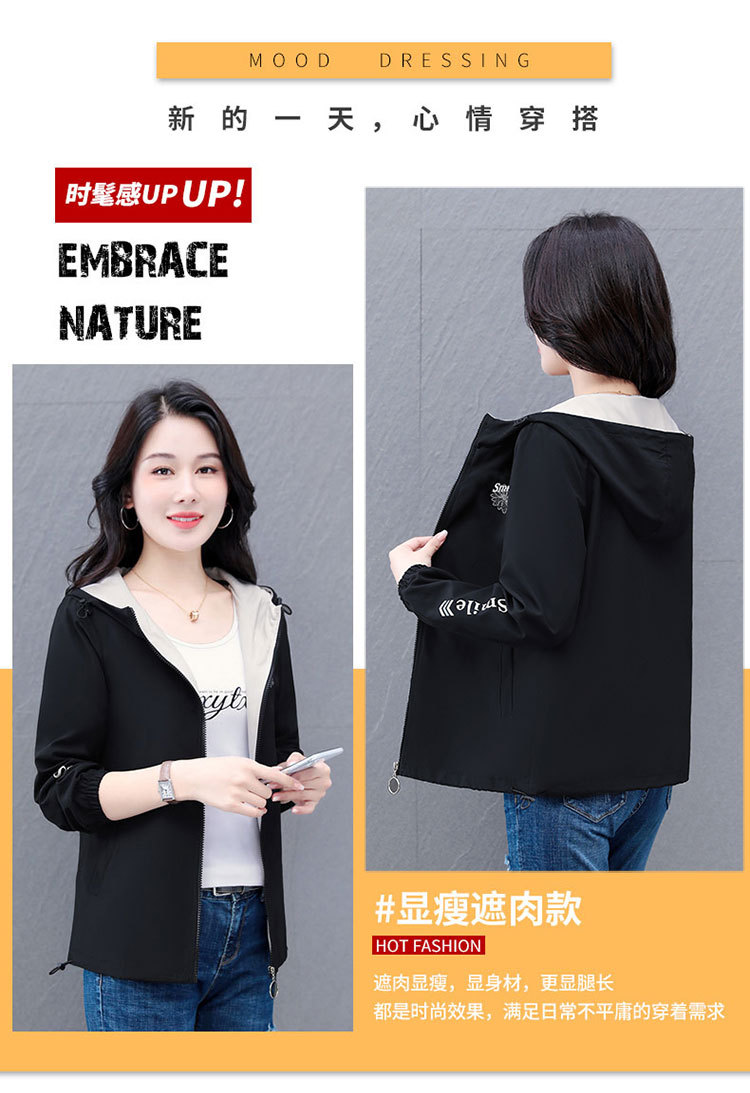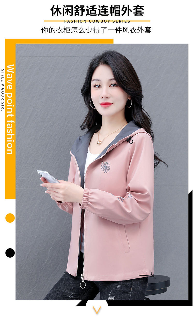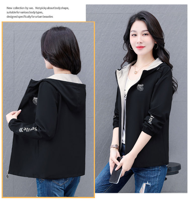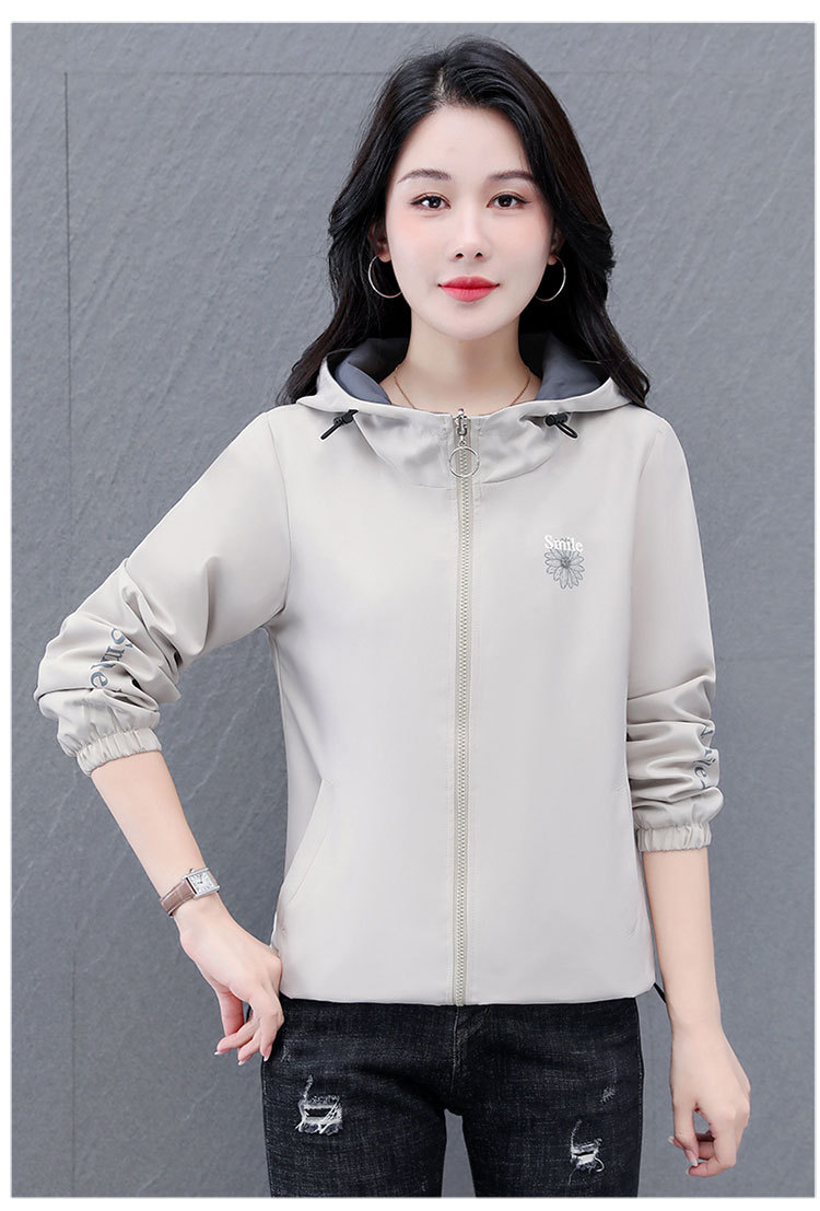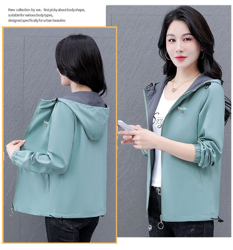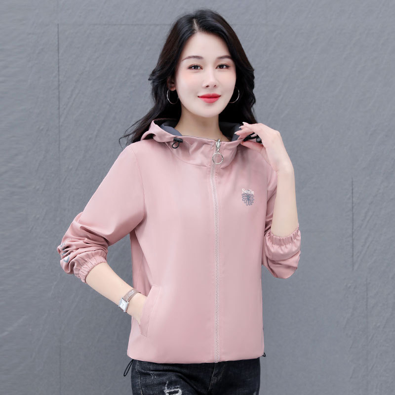가을 2024 새로운 색상 대비 후드 재킷 짧은 코트 여성 중년 어머니 단순 느슨한 올매치 지퍼 카디건스토어 가기