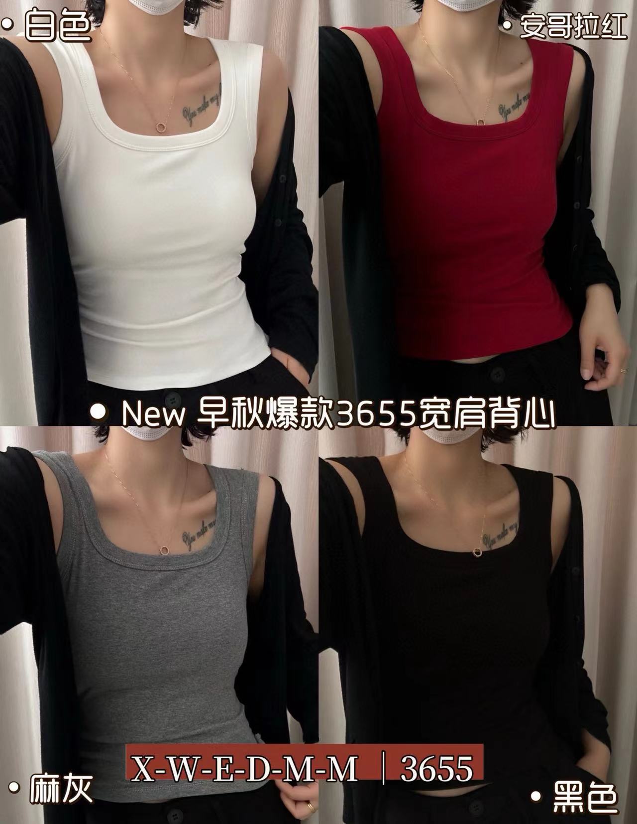 이른 가을 새로운 와이드 숄더 스트랩 조끼 가슴 패드 슬림 핏 올 매치 슬링 이너 3655 와 아름다운 등 어깨 고정 컵