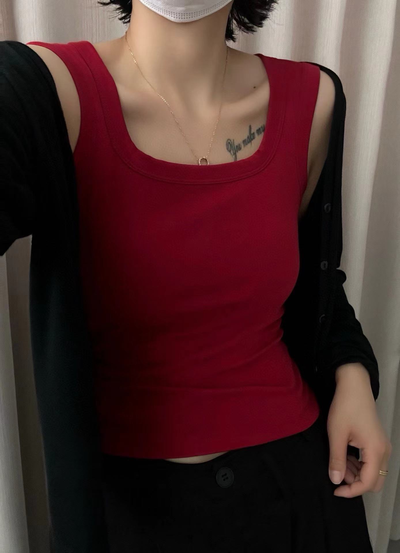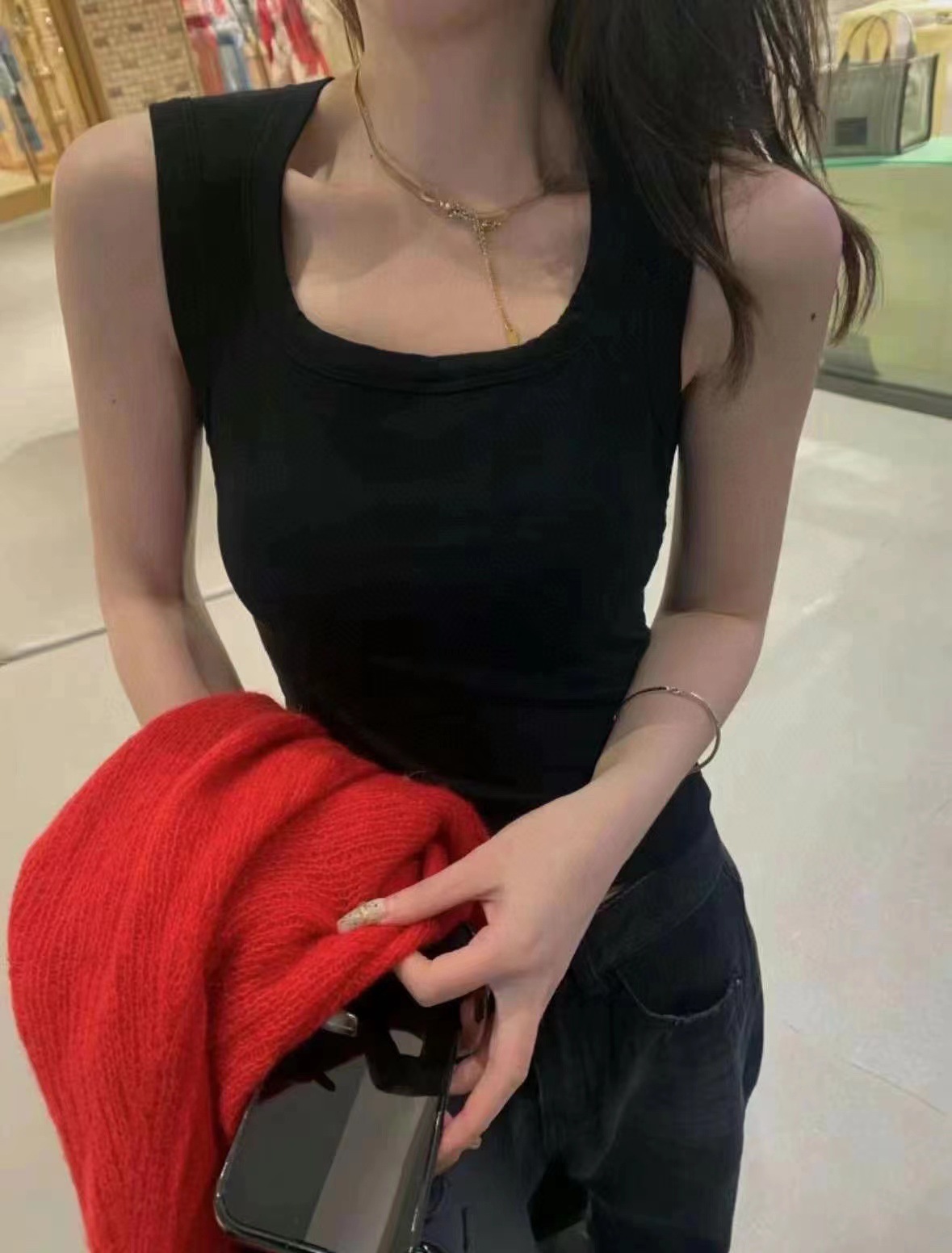 이른 가을 새로운 와이드 숄더 스트랩 조끼 가슴 패드 슬림 핏 올 매치 슬링 이너 3655 와 아름다운 등 어깨 고정 컵스토어 가기