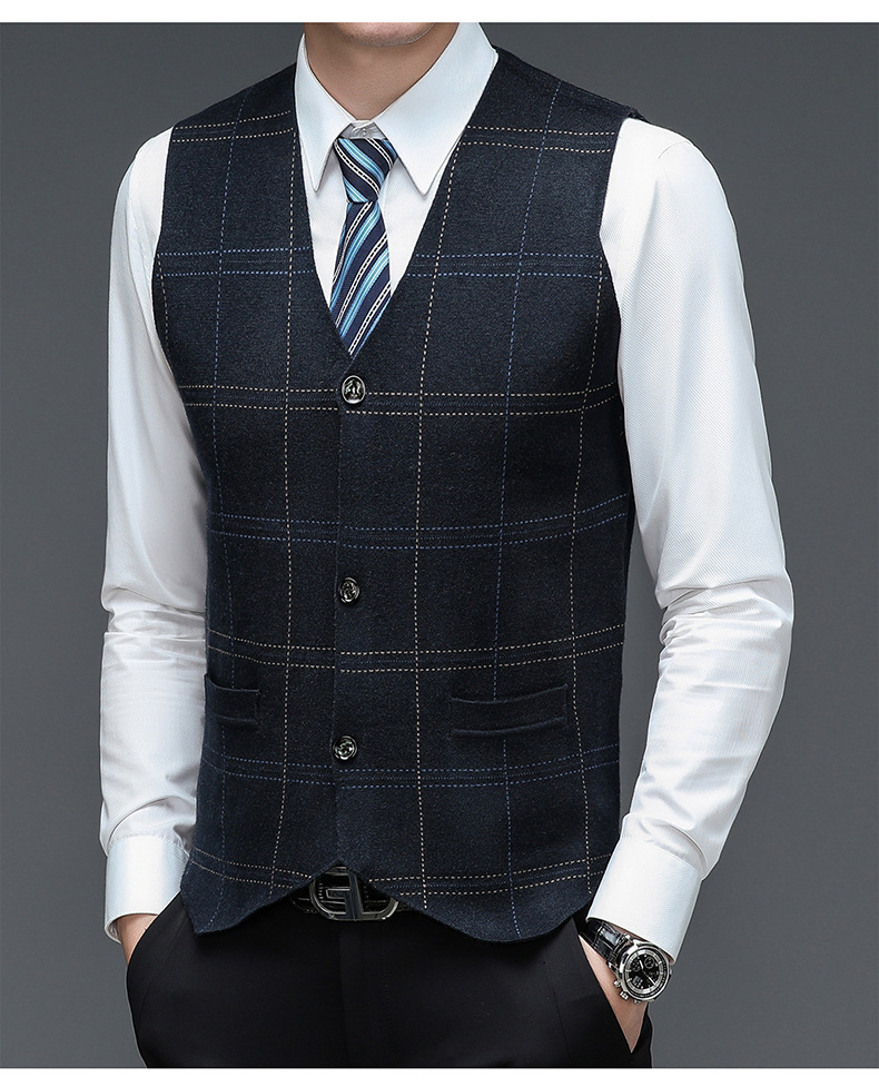 패션 남성 세트 V-Neck 조끼 니트 버튼 신랑 최고의 남자 슬림핏 격자 무늬 조끼 비즈니스 오피스 세트스토어 가기