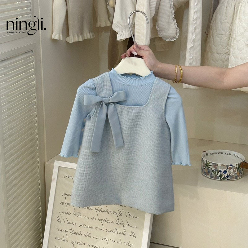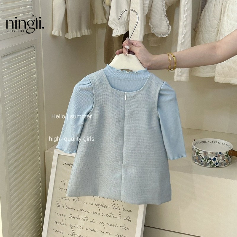 라임 소녀의 가을 세트 새로운 아기 소녀의 세련된 조끼 원피스 유행베이스 셔츠 캐주얼 봄과 가을 투피스 세트스토어 가기