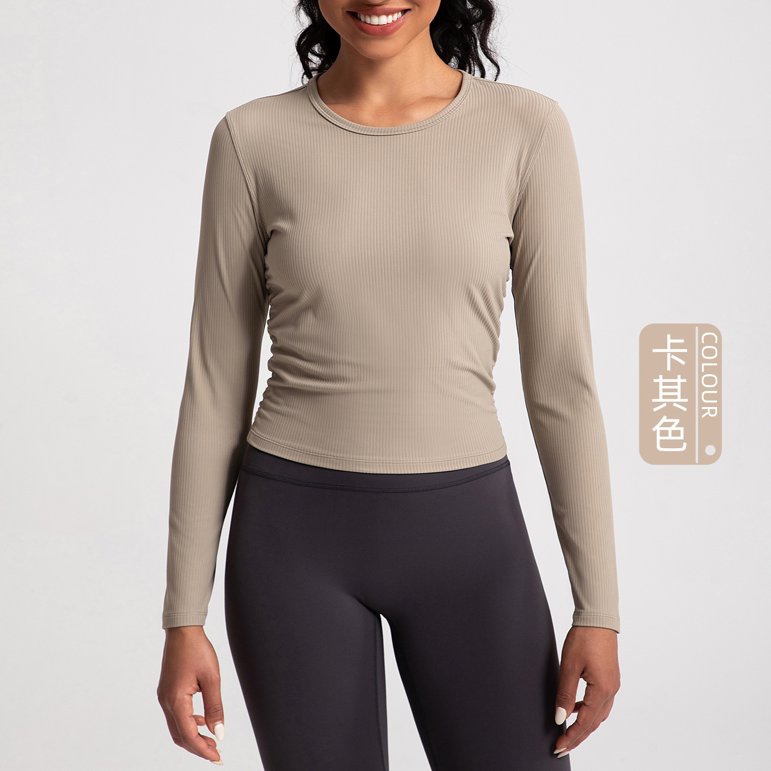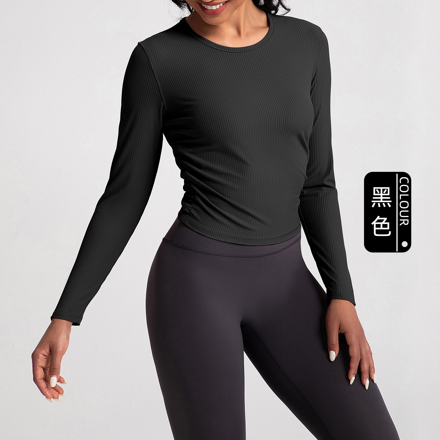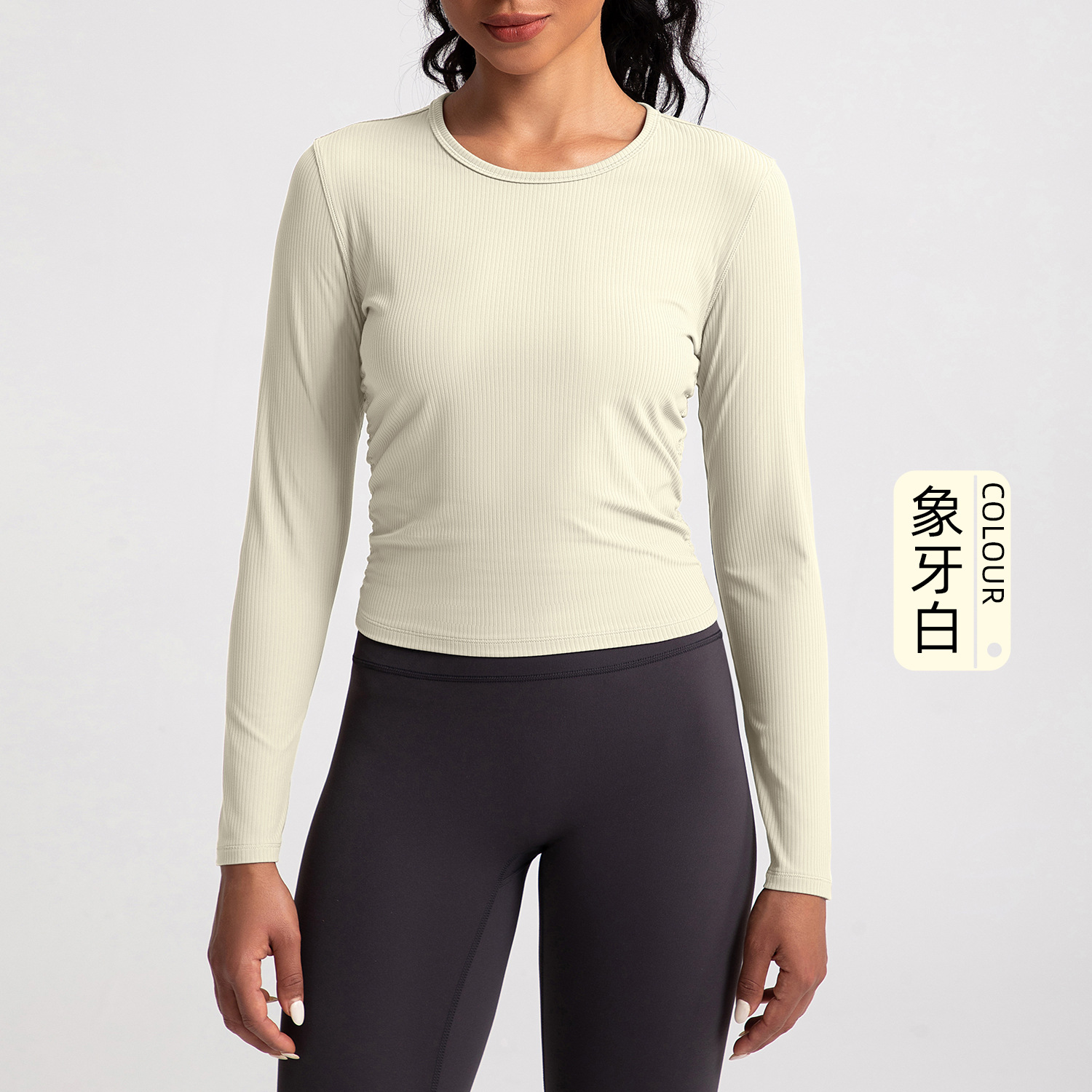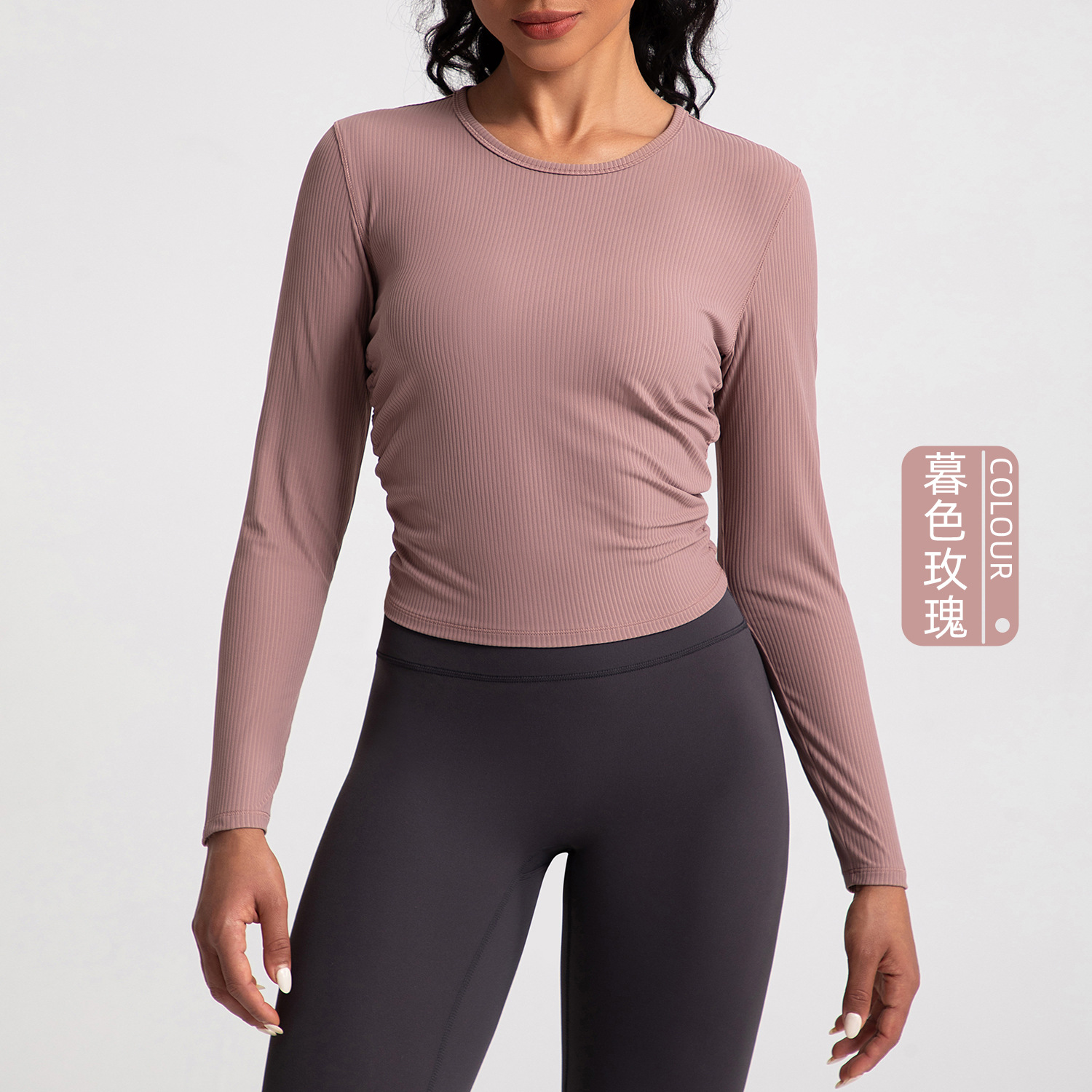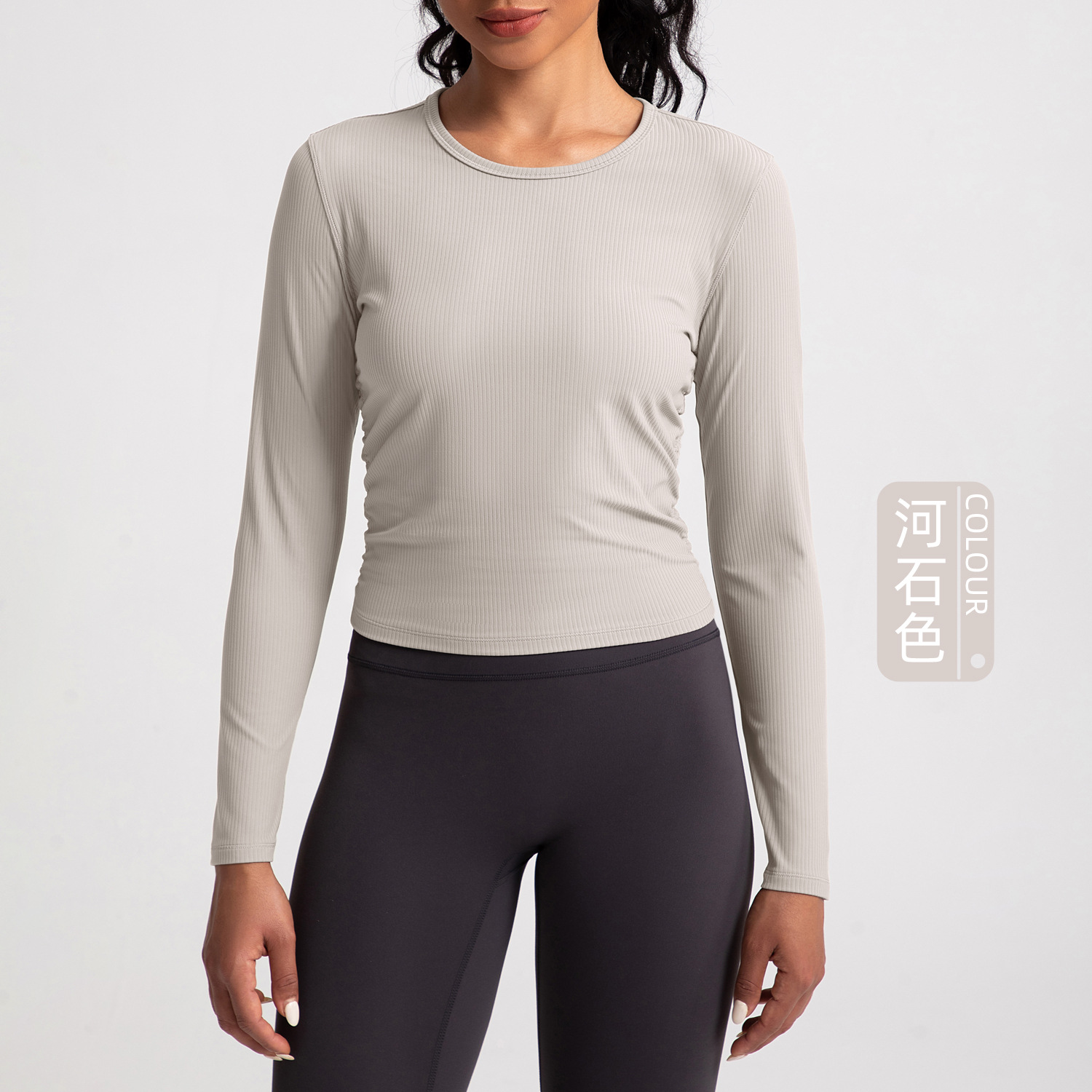 아테나 룰루 워터 밀 리브 요가 세트 여성용 긴팔 플리츠 슬리밍 스포츠 피트니스 세트 탑