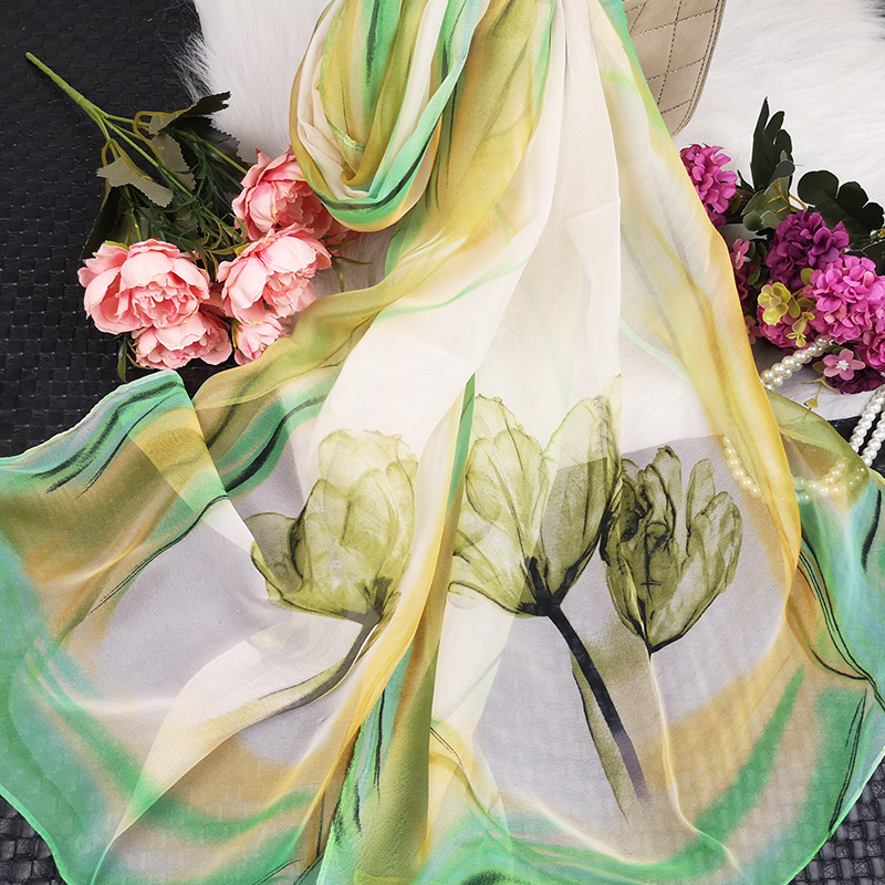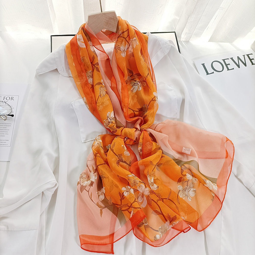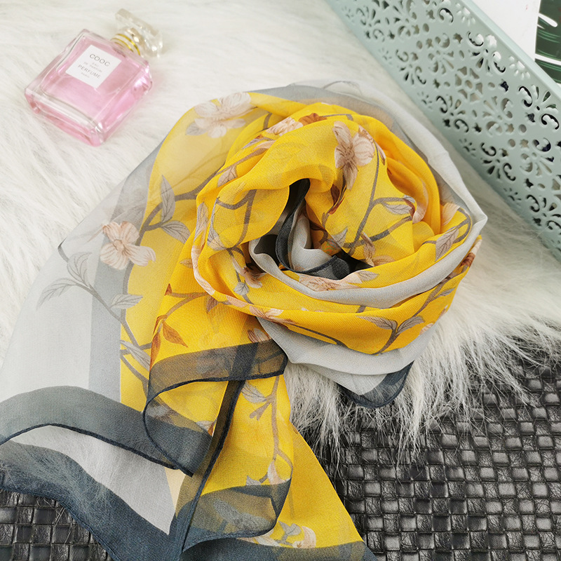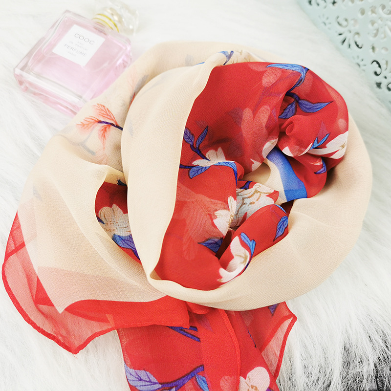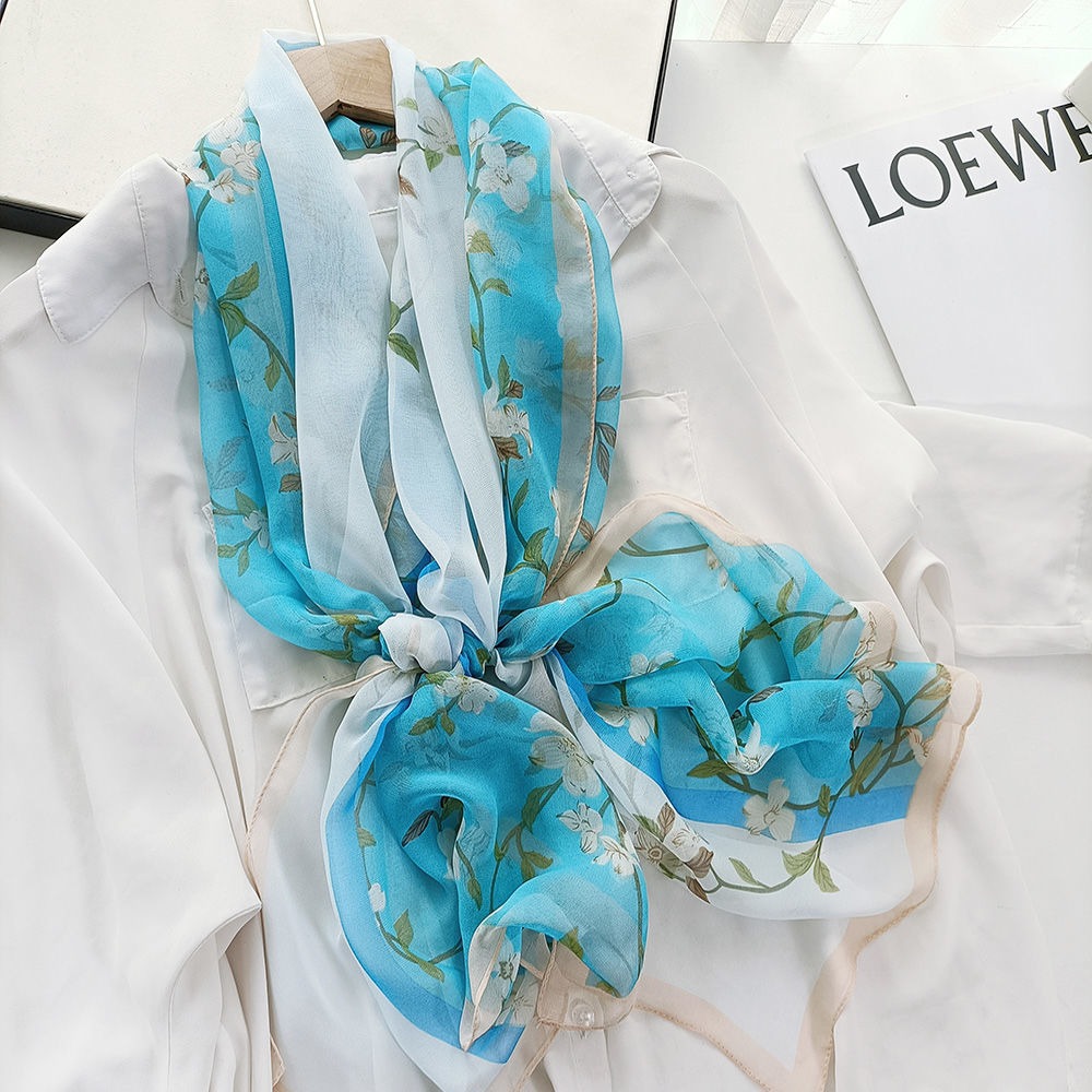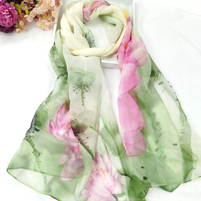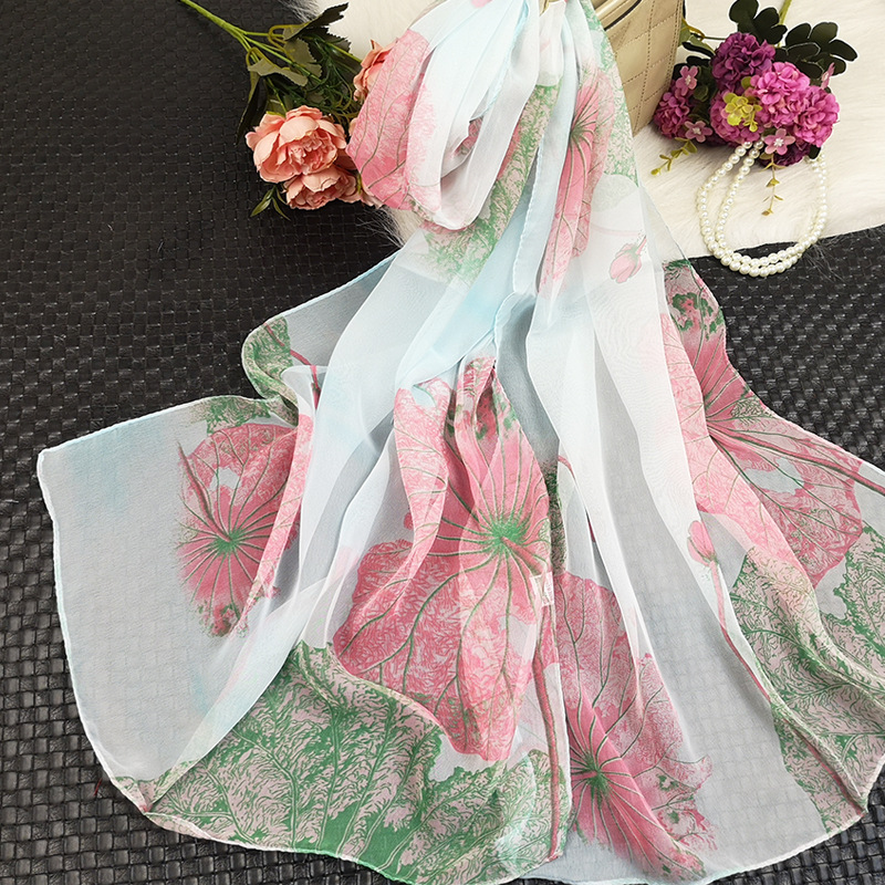 새로운 스카프 가을과 겨울 조커 새로운 선물 스카프 여성의 긴 작은 국경 SCARk 연꽃 스카프 머리카락 세대스토어 가기