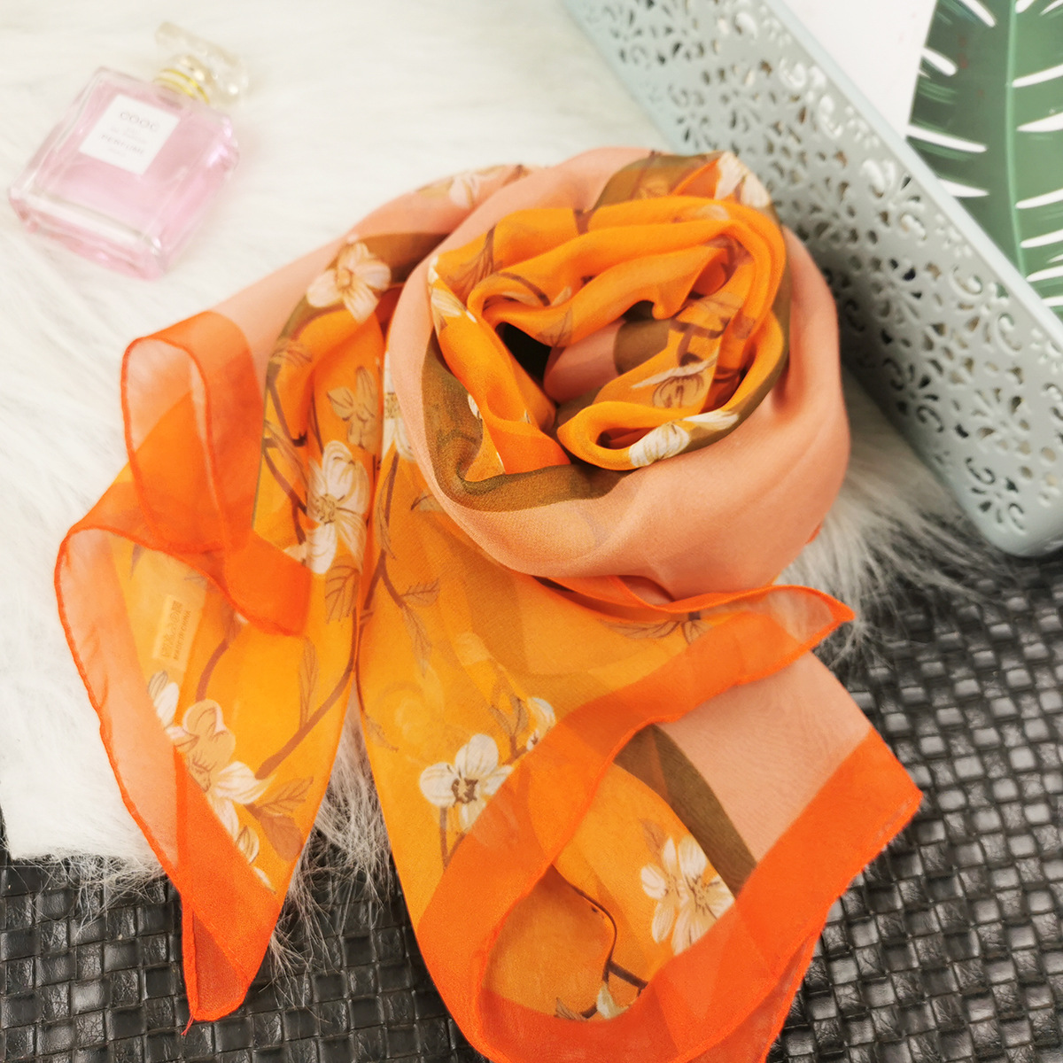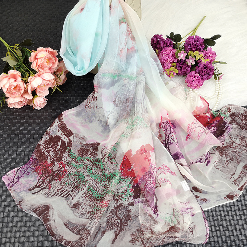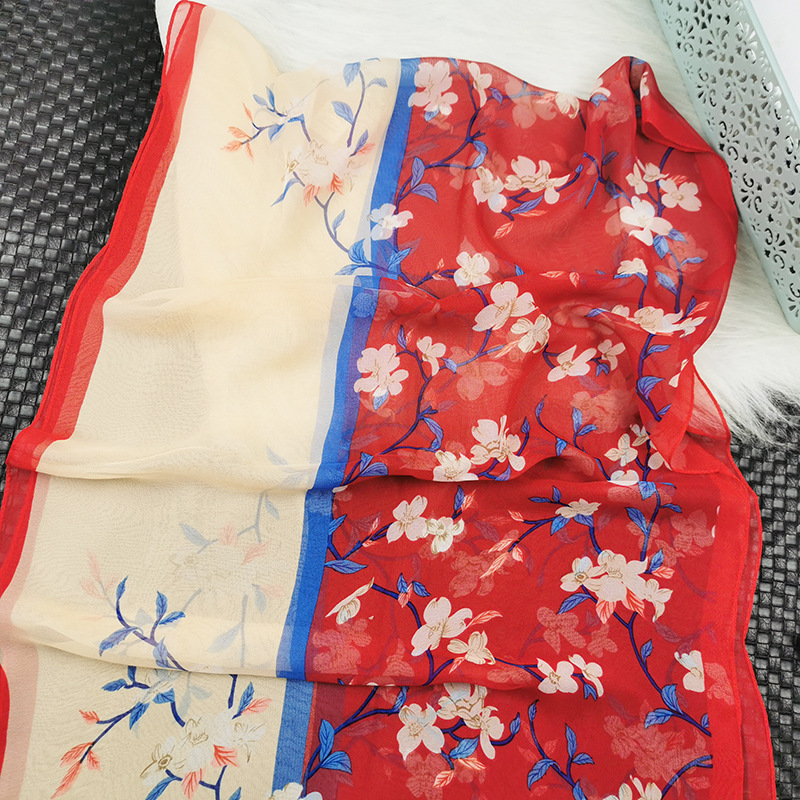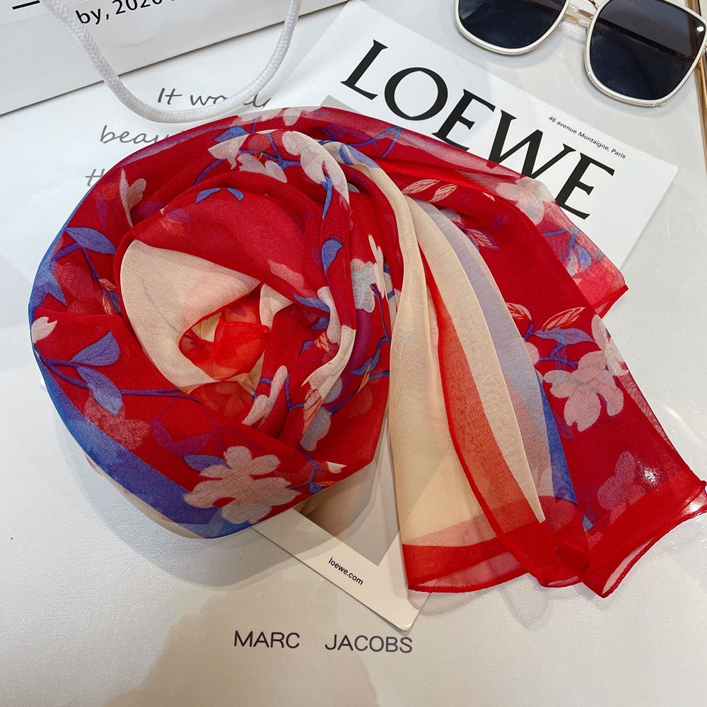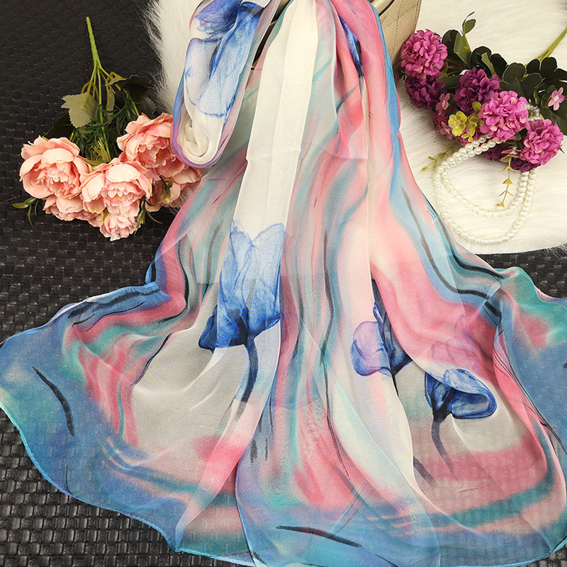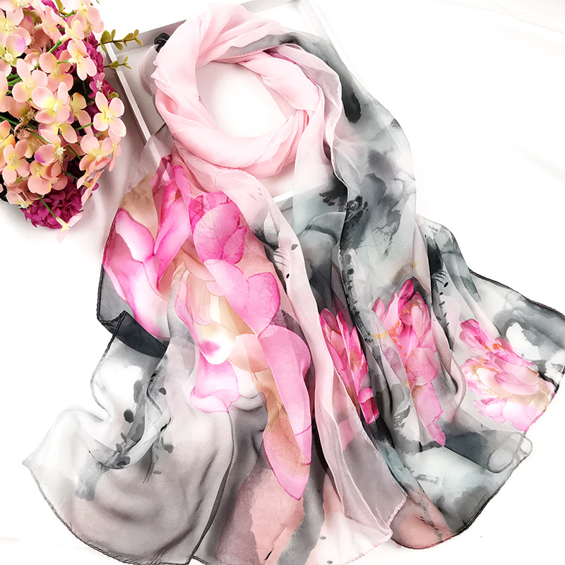 새로운 스카프 가을과 겨울 조커 새로운 선물 스카프 여성의 긴 작은 국경 SCARk 연꽃 스카프 머리카락 세대스토어 가기