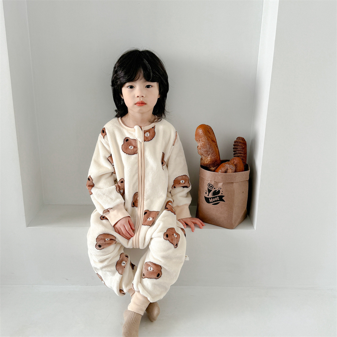 카테고리 A 가을/겨울 어린이 플란넬 점프 수트 기모 따뜻한 아기 남성과 여성의 슬리핑 백 두꺼운 홈 옷