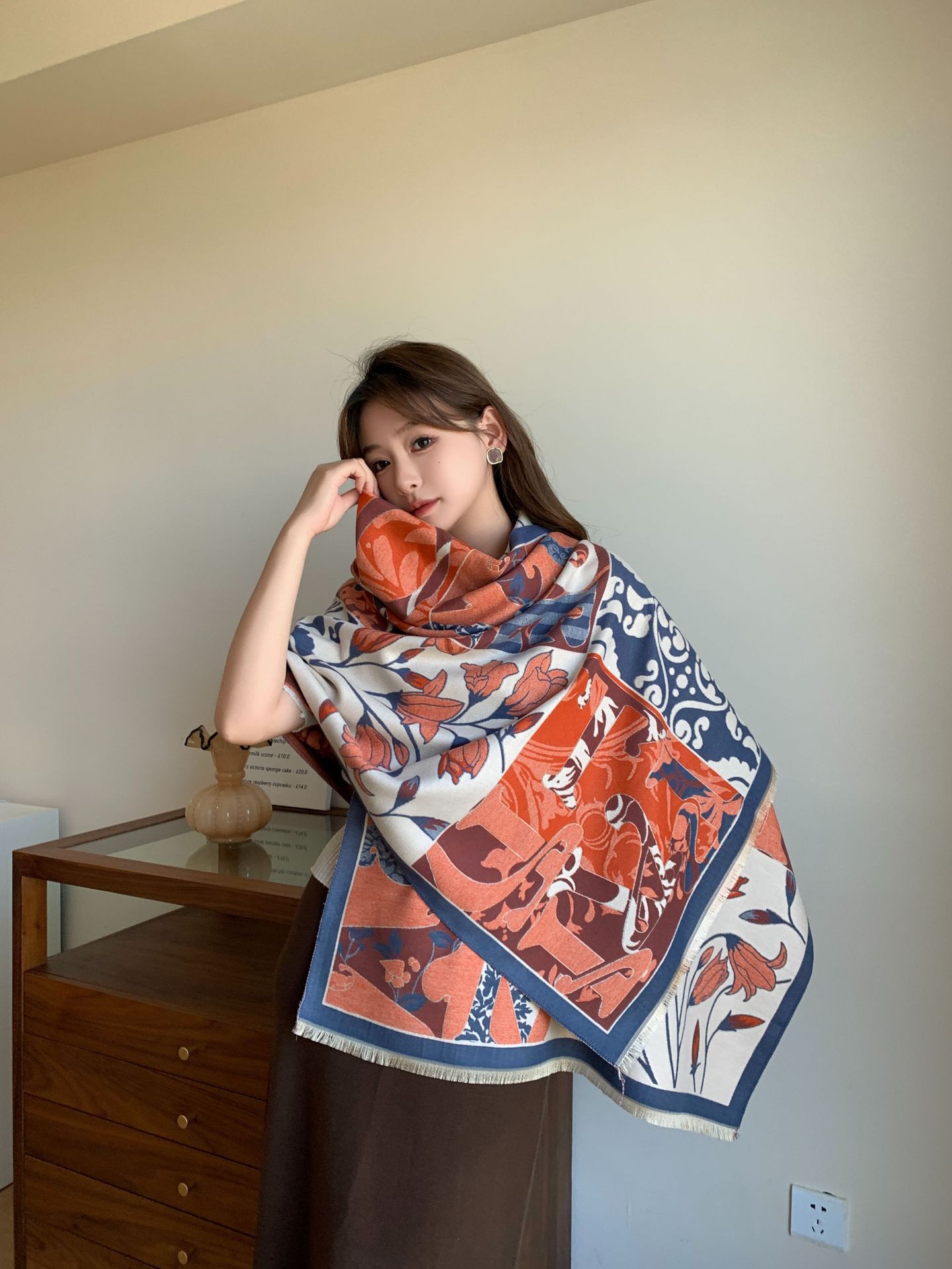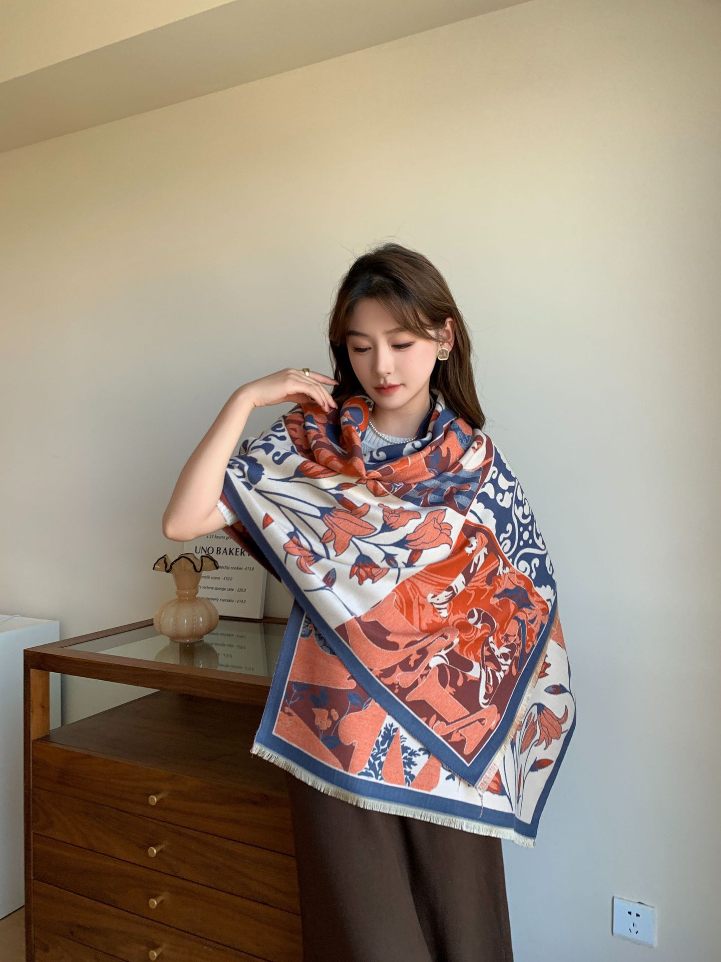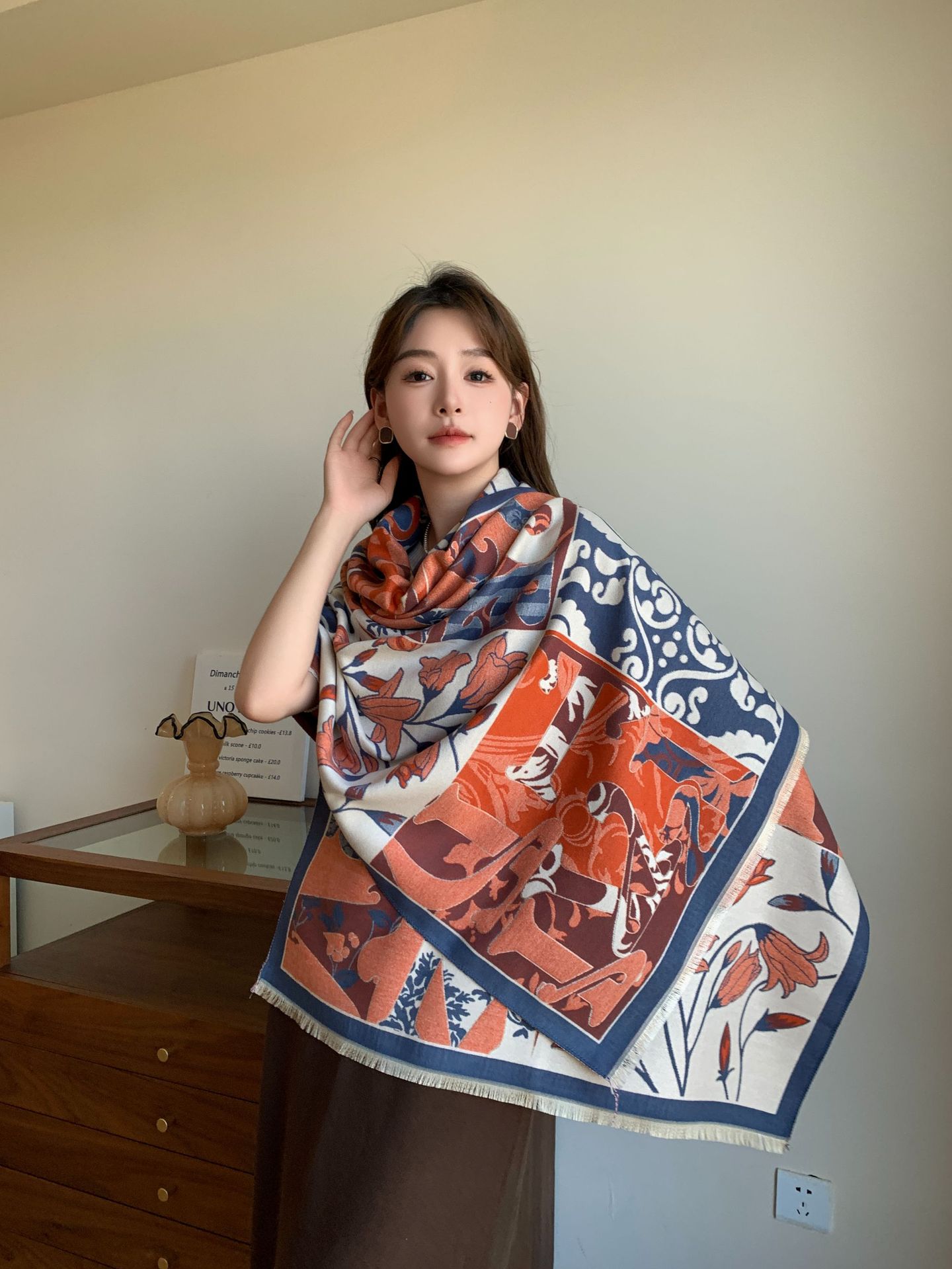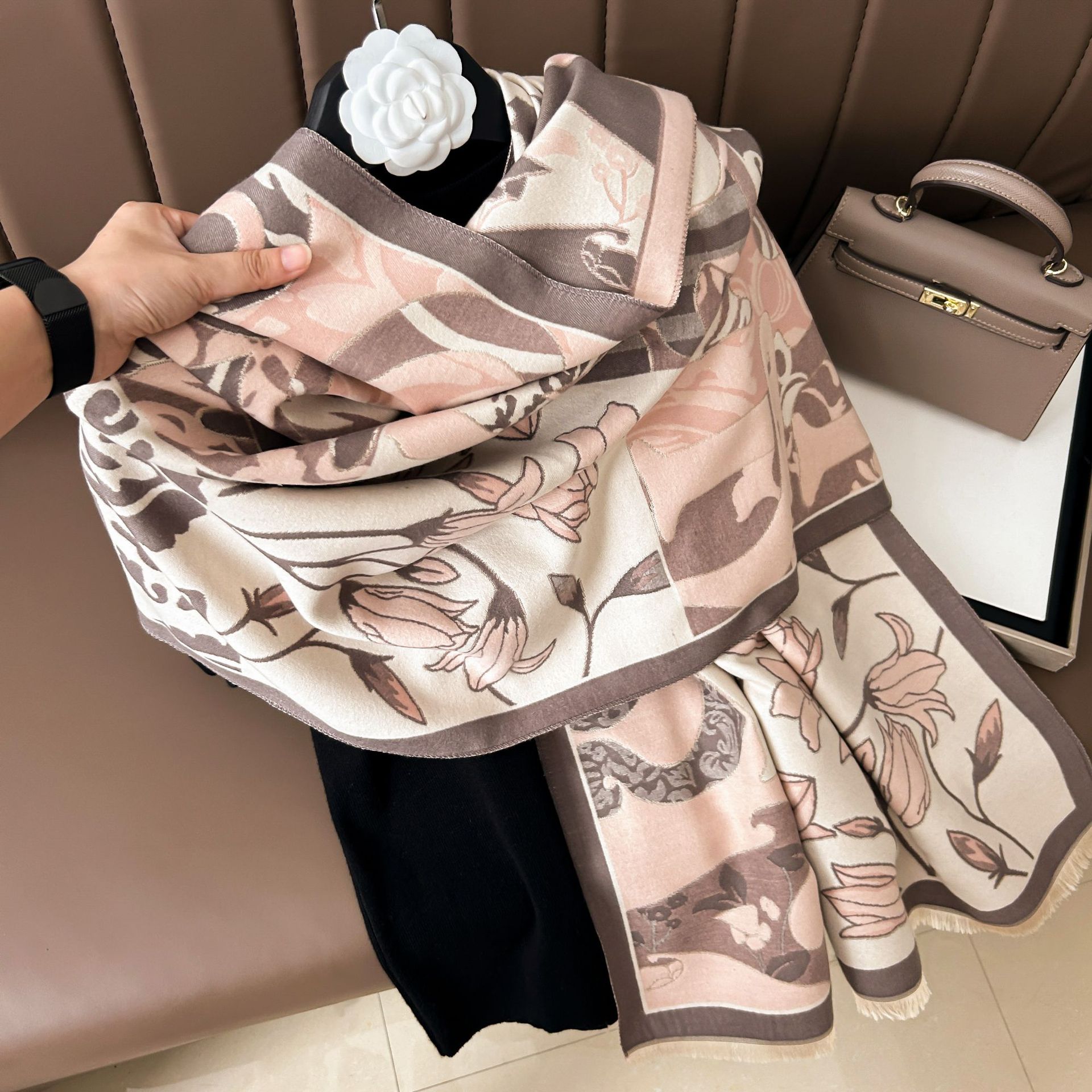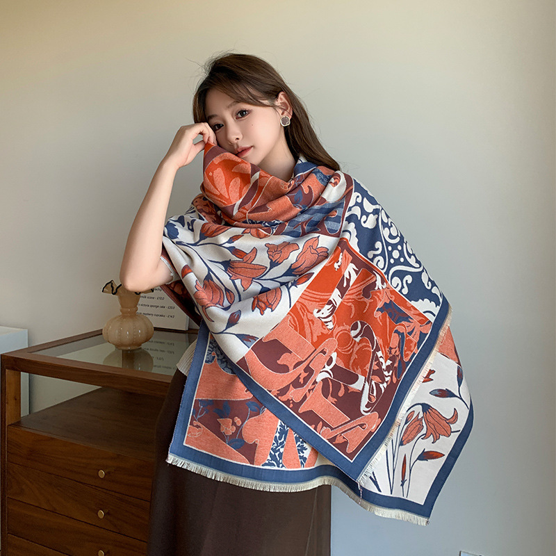 겨울 새로운 모조 캐시미어 빈티지 하이 엔드 플라워 룸 유유 다재다능한 패션 스카프 인쇄 따뜻한 소녀 스카프