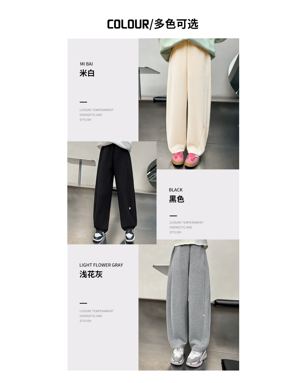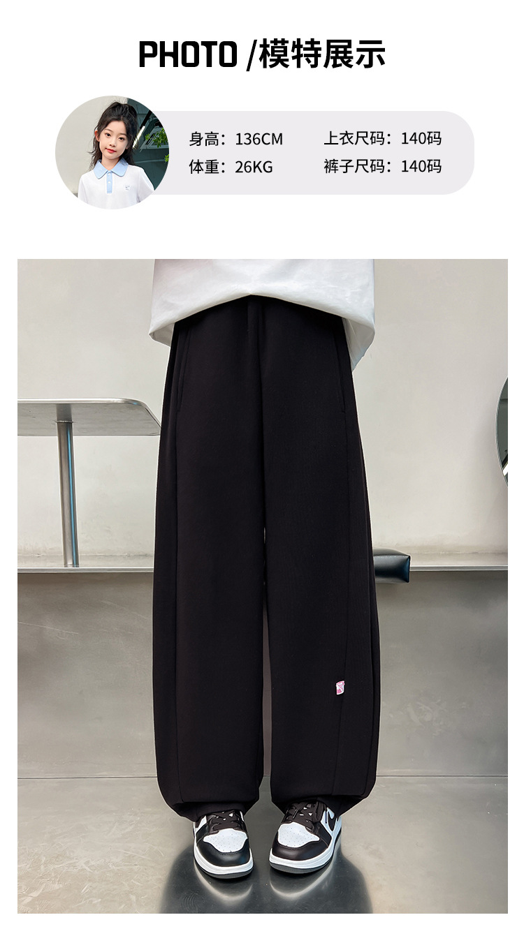 LAVI Spring New Girls 바나나 바지 느슨한 바지 캐주얼 와이드 레그 바지 올 매치 미들 및 빅 어린이 니트 롱 팬츠스토어 가기
