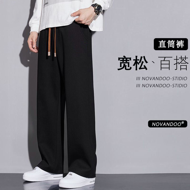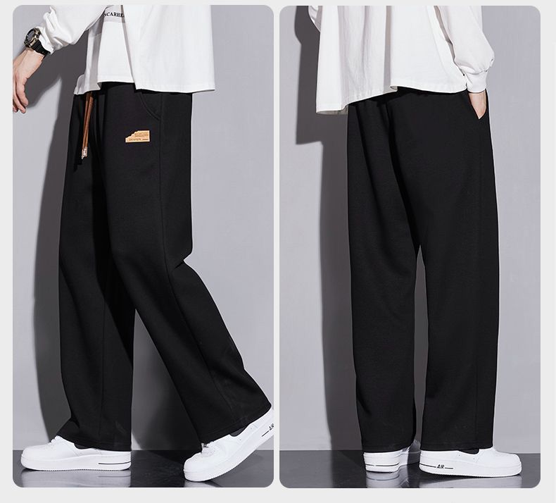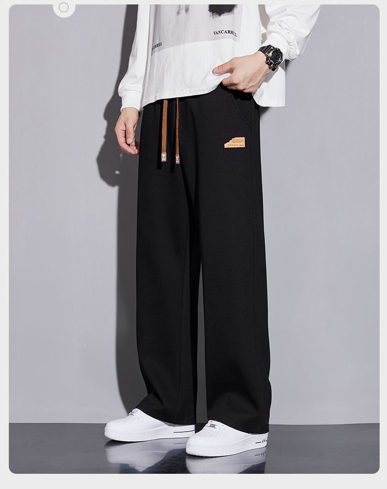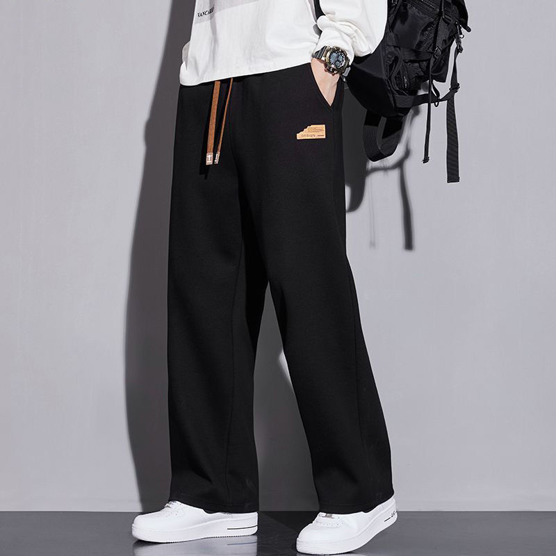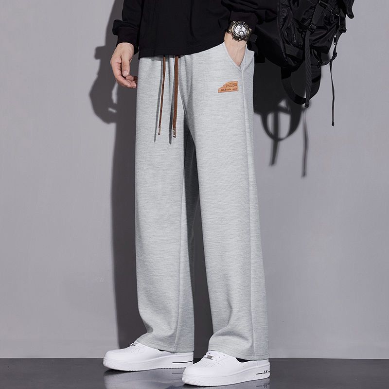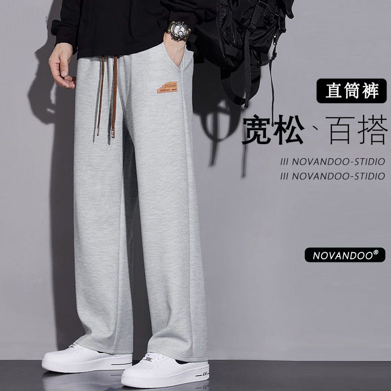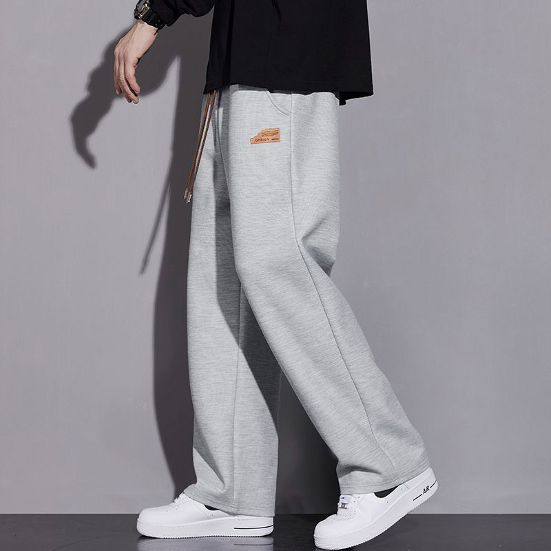 봄과 가을의 새로운 스포츠 바지 남성용 세련된 와이드 레그 스트레이트 바지 남성용 올 매치 캐주얼 스웨트 바지
