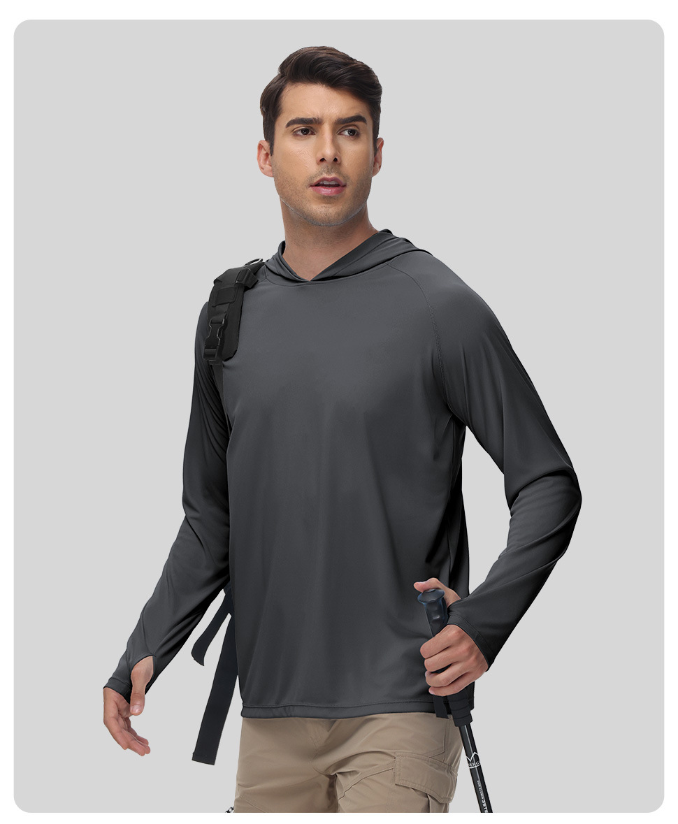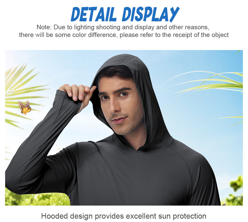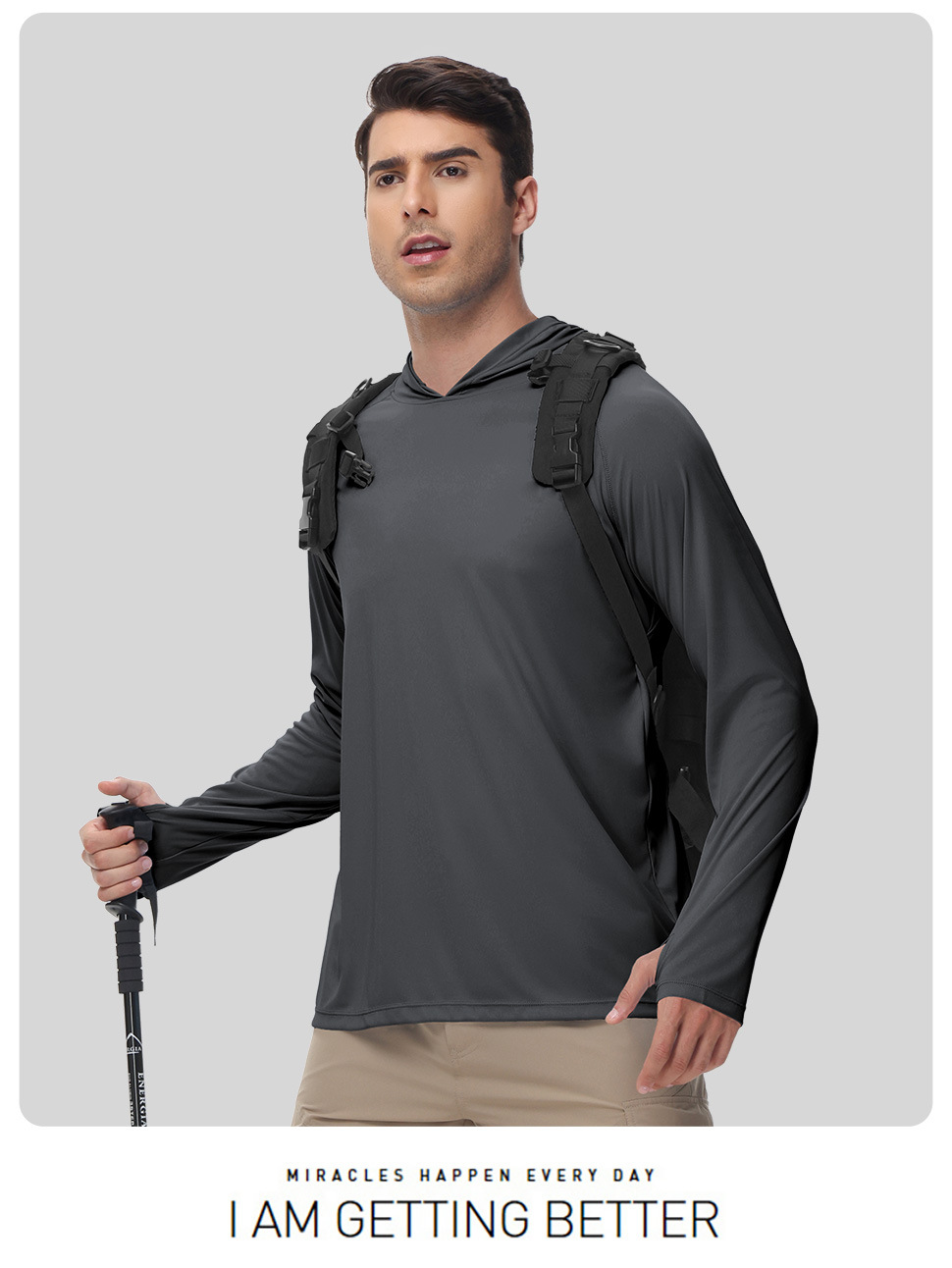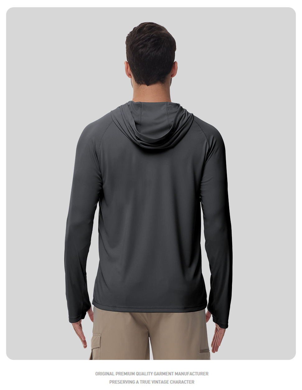 跨境防晒衣男士户外防紫外线夏季速干钓鱼服凉感连帽男长袖T恤男