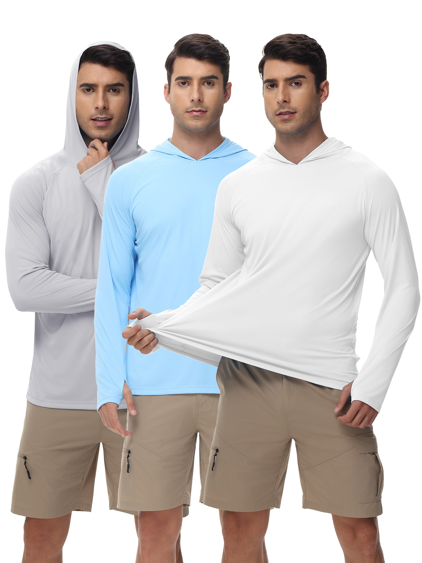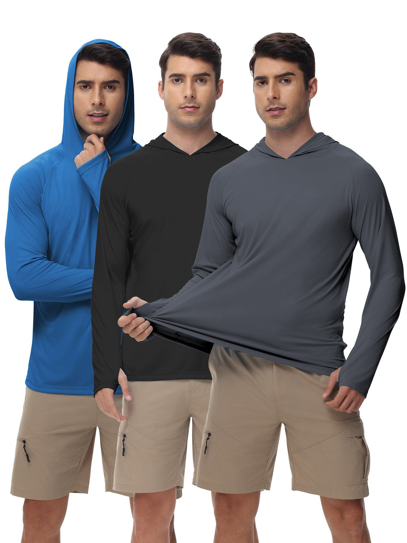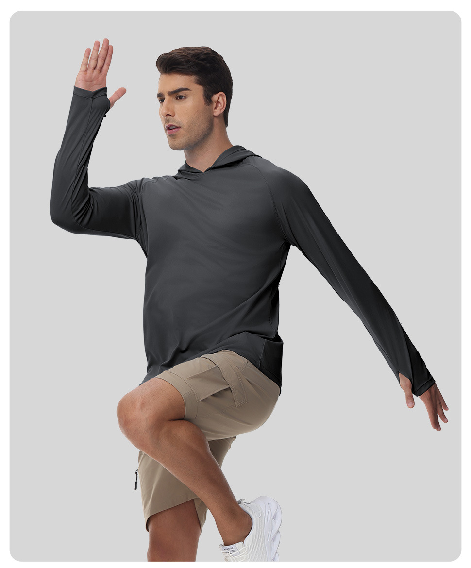 跨境防晒衣男士户外防紫外线夏季速干钓鱼服凉感连帽男长袖T恤男