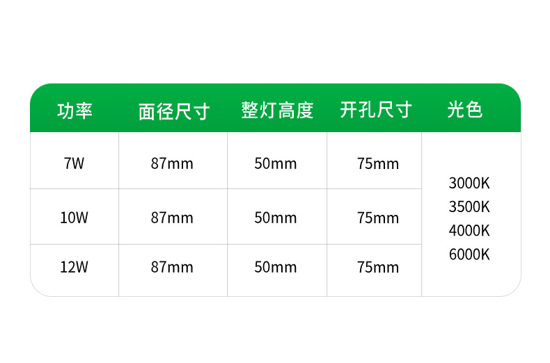 • 4251 유도 스포트라이트-흰색 컵-12W-개구 75mm-6000K 백색광-전체 스펙트럼