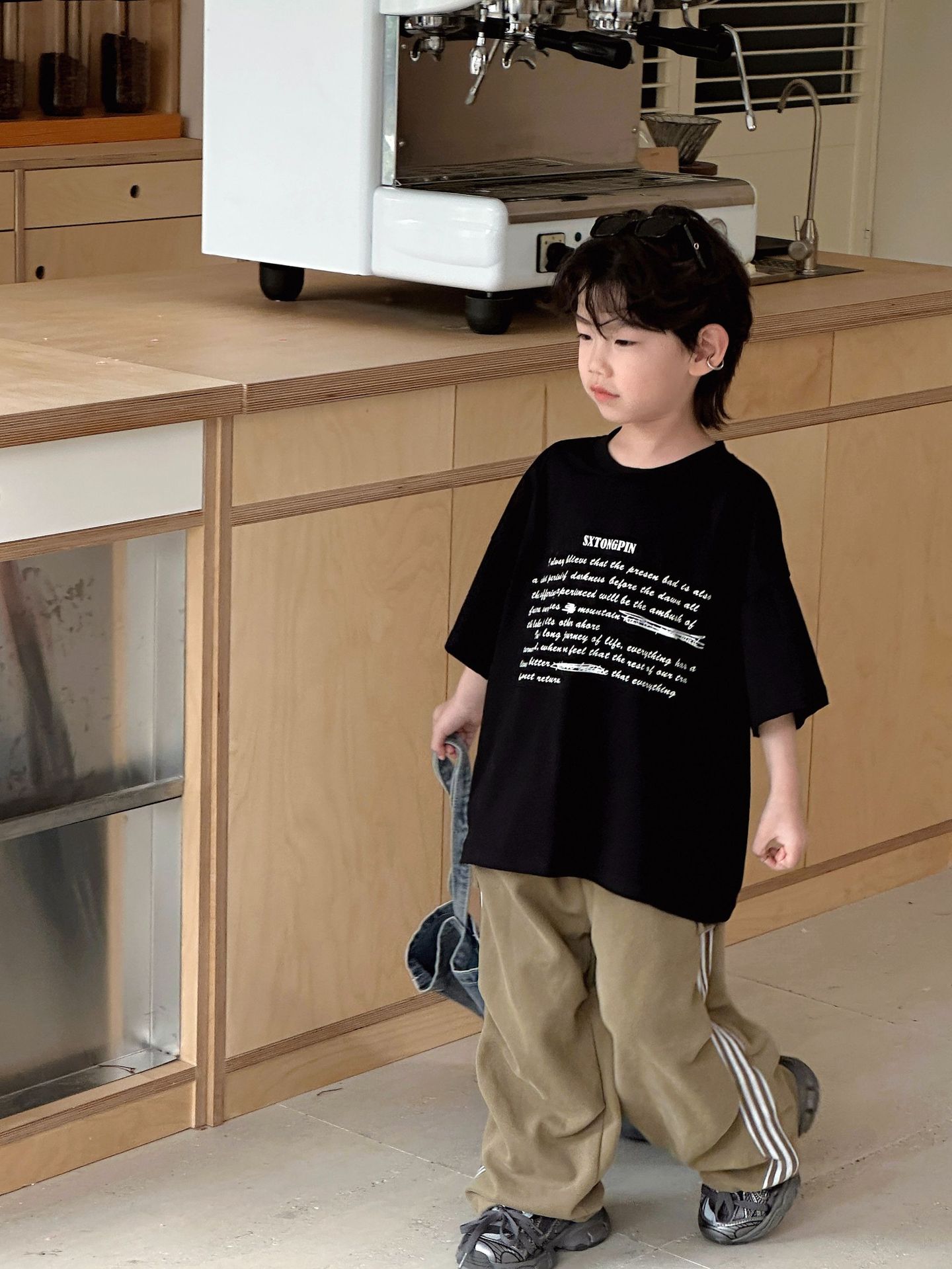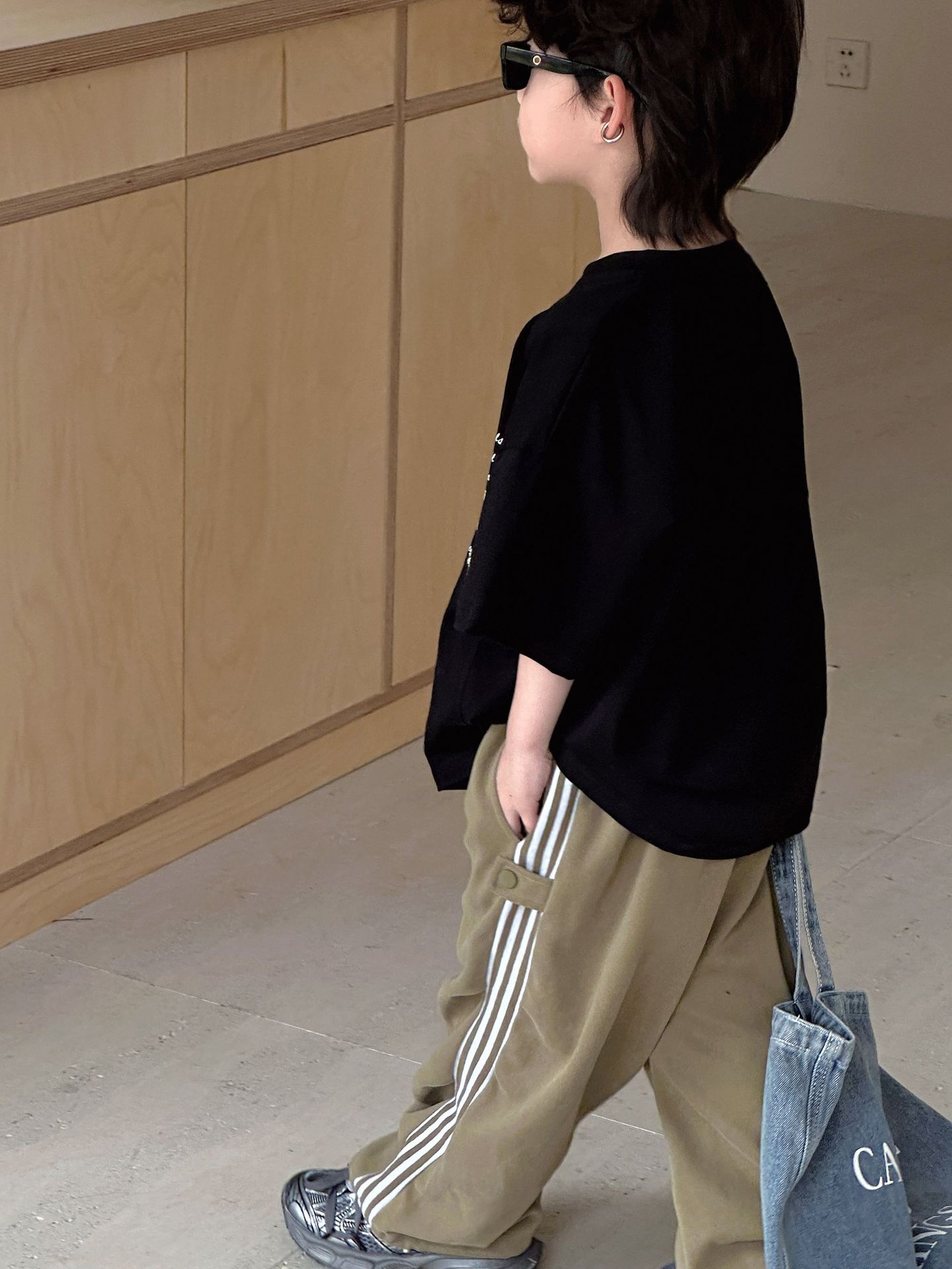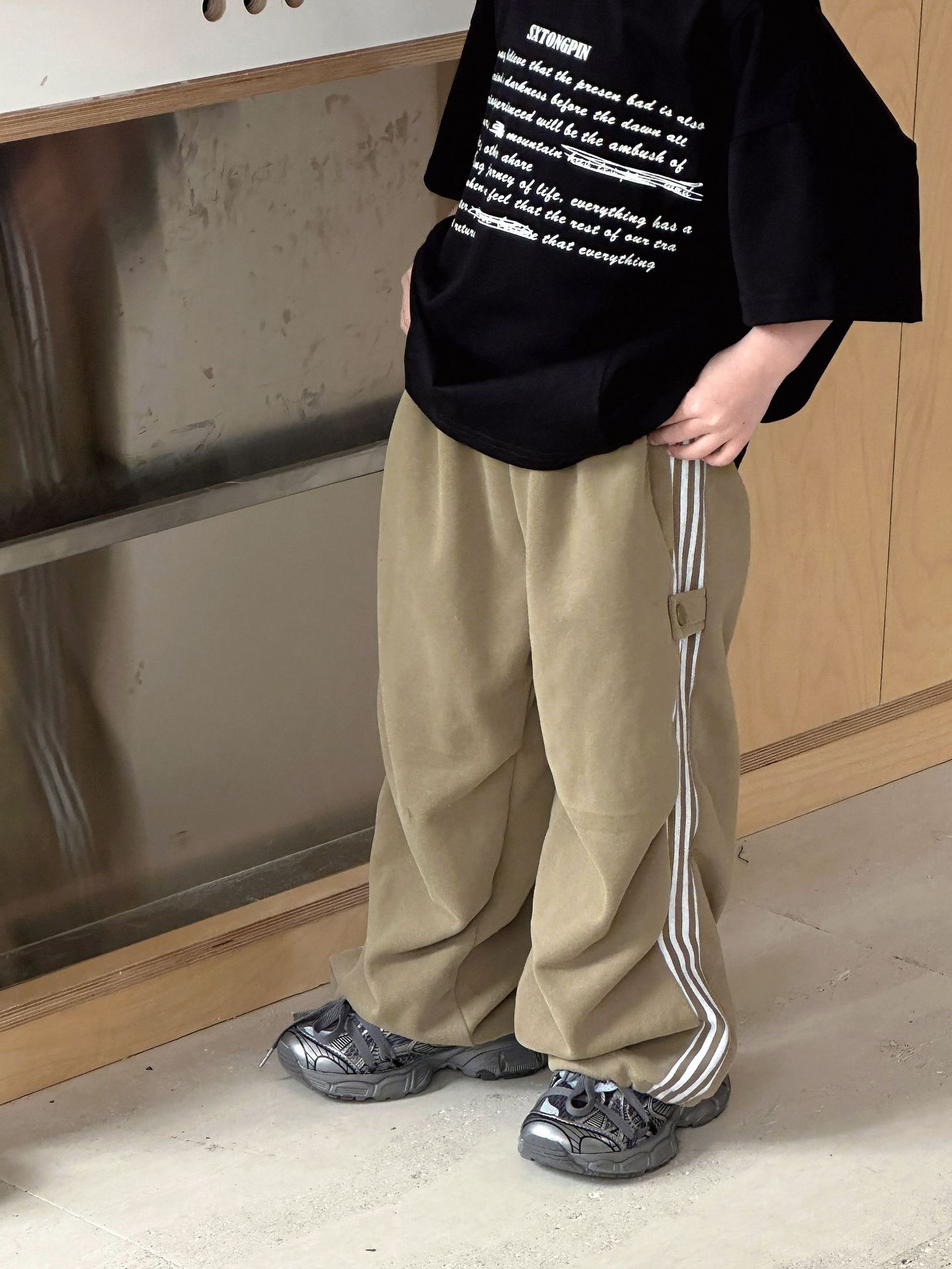 2024 가을 소년 소녀 바지 캐주얼 올매치 트렌디 어린이 바 사이드 맞춤법 아기 캐주얼 스트레이트 바지스토어 가기
