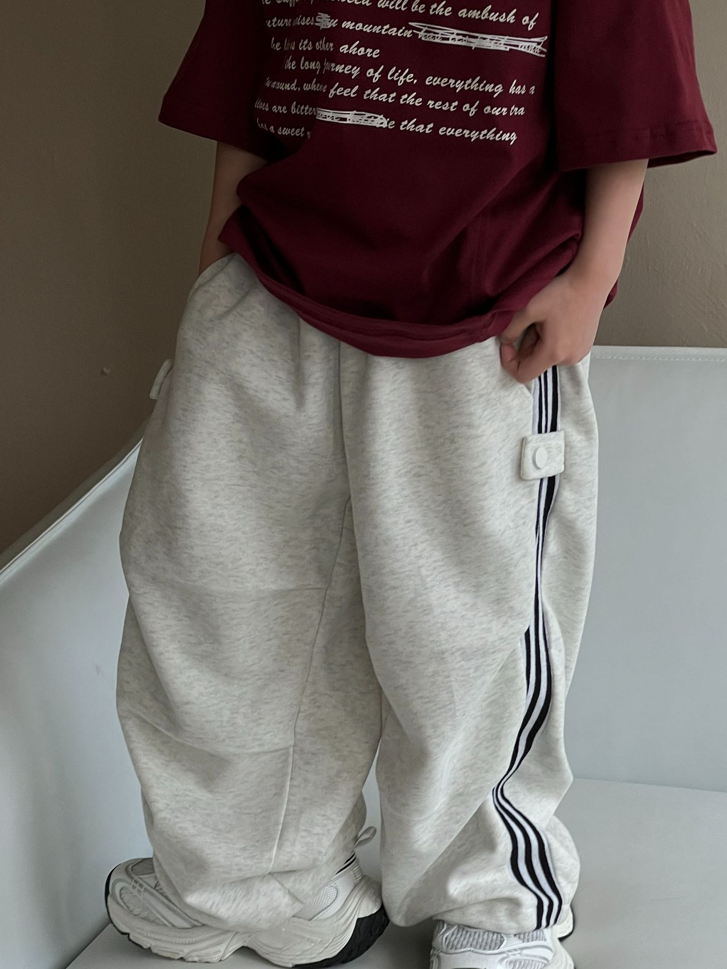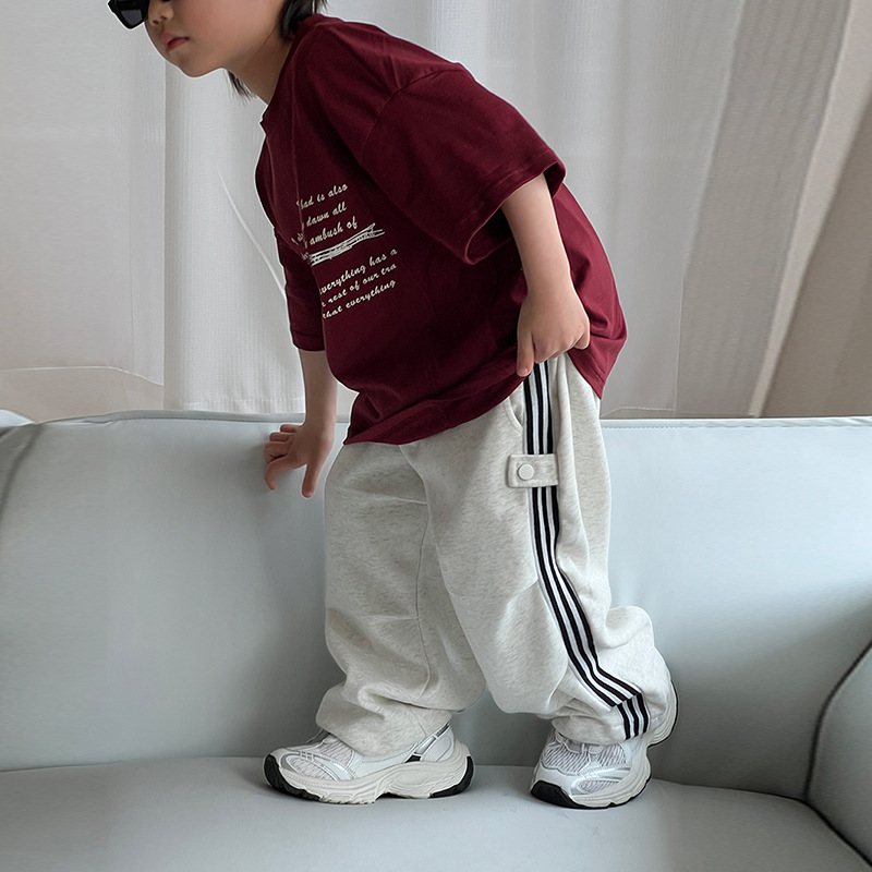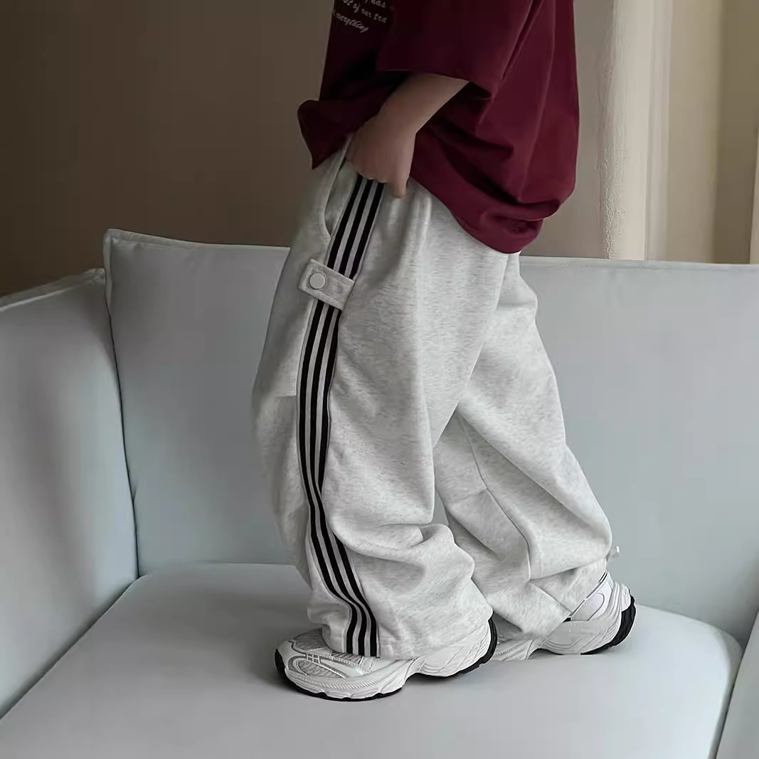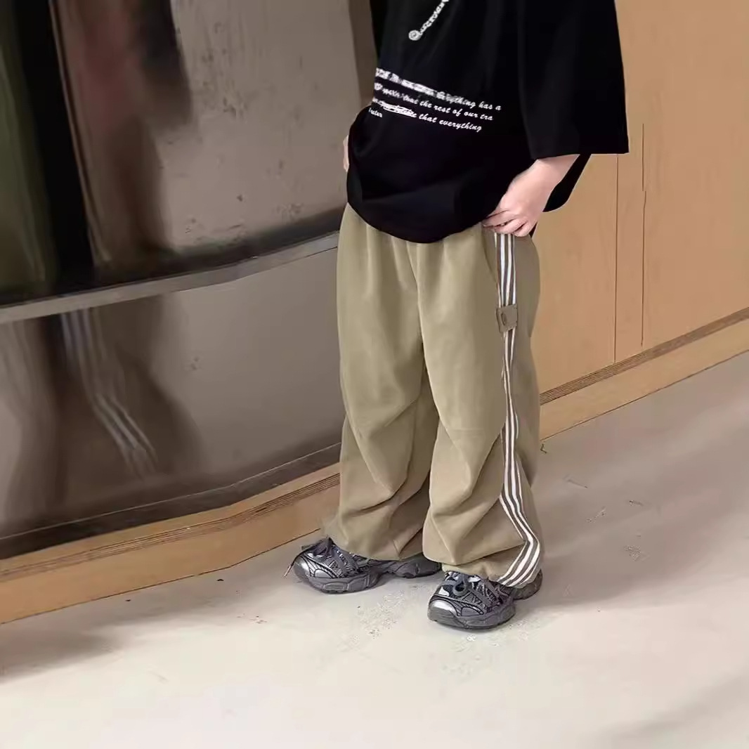 2024 가을 소년 소녀 바지 캐주얼 올매치 트렌디 어린이 바 사이드 맞춤법 아기 캐주얼 스트레이트 바지