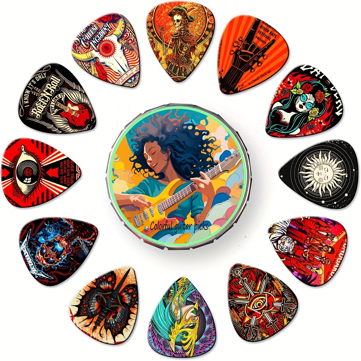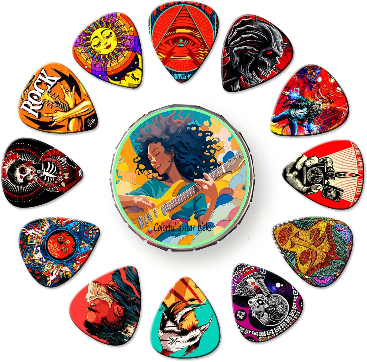 비 반복적 인 철 상자 컬러 기타 12 조각 우쿨렐레 파편 악기를 그린 액세서리 선택스토어 가기