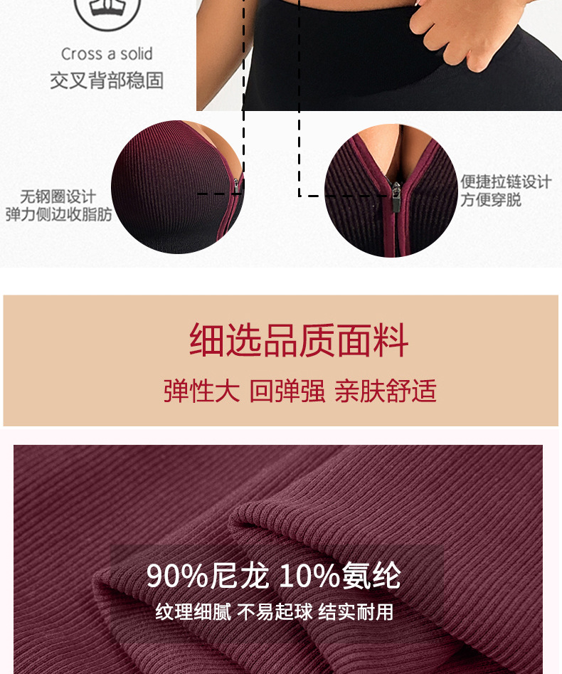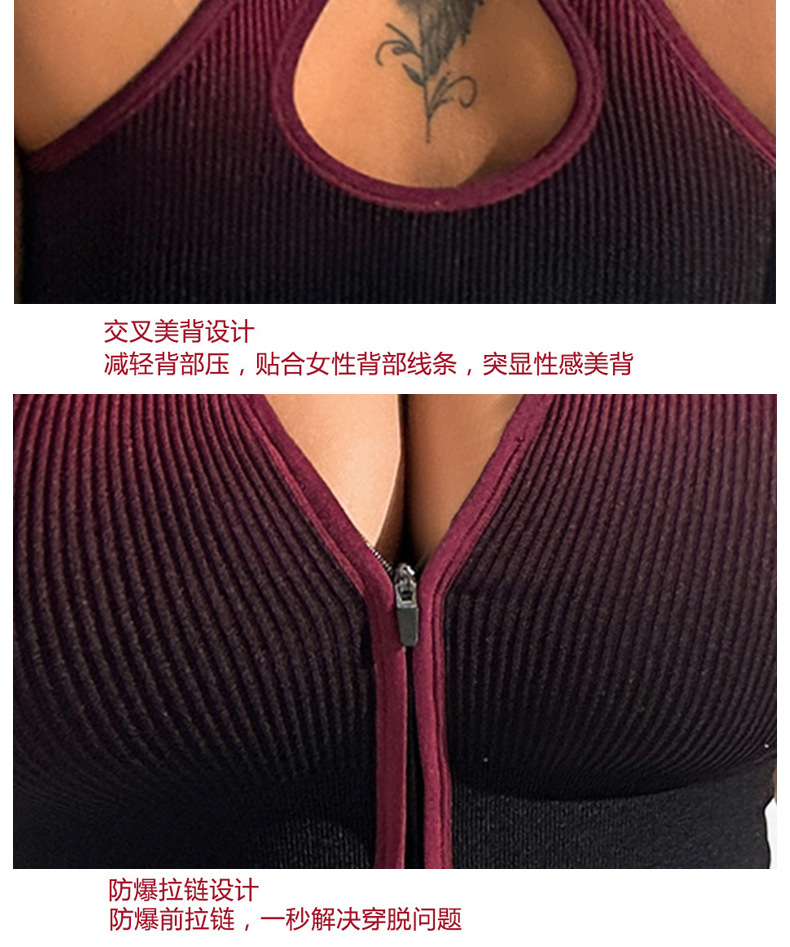 그라데이션 스포츠 브라, 충격 방지 러닝 브라, 앞면 지퍼, 피트니스 요가복, 여성용 통기성 속건 조끼 브라