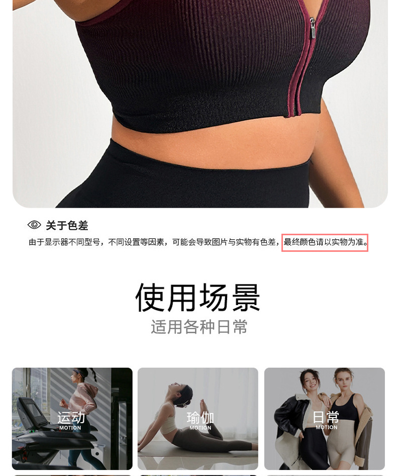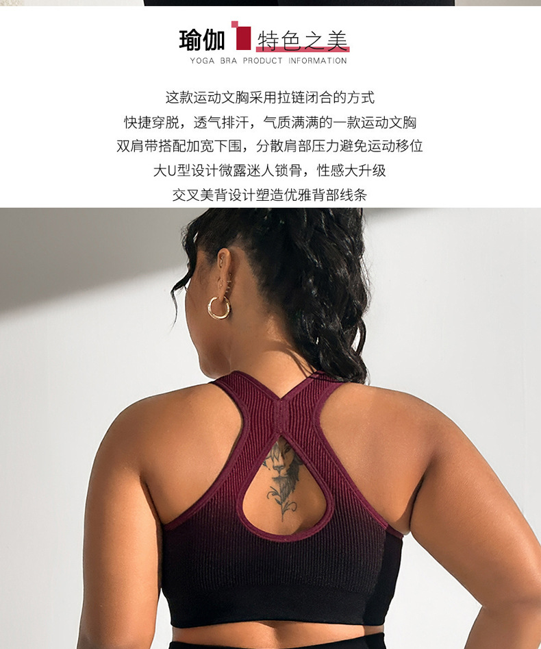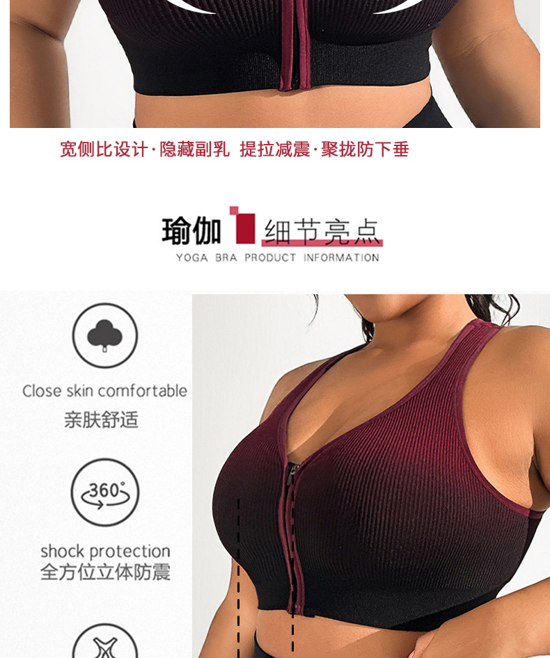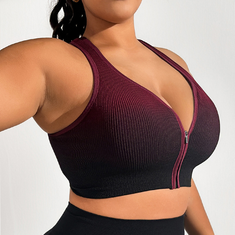 그라데이션 스포츠 브라, 충격 방지 러닝 브라, 앞면 지퍼, 피트니스 요가복, 여성용 통기성 속건 조끼 브라스토어 가기