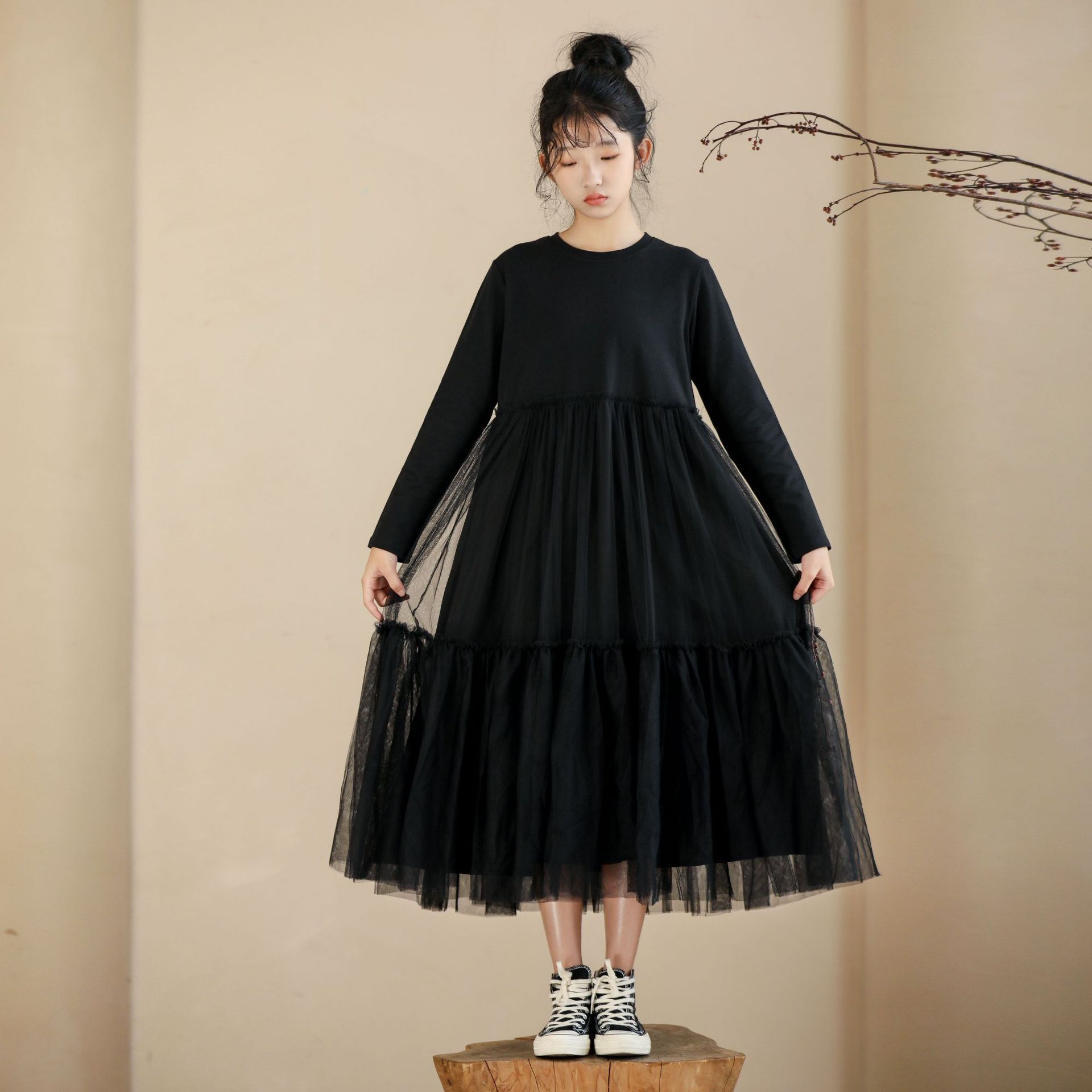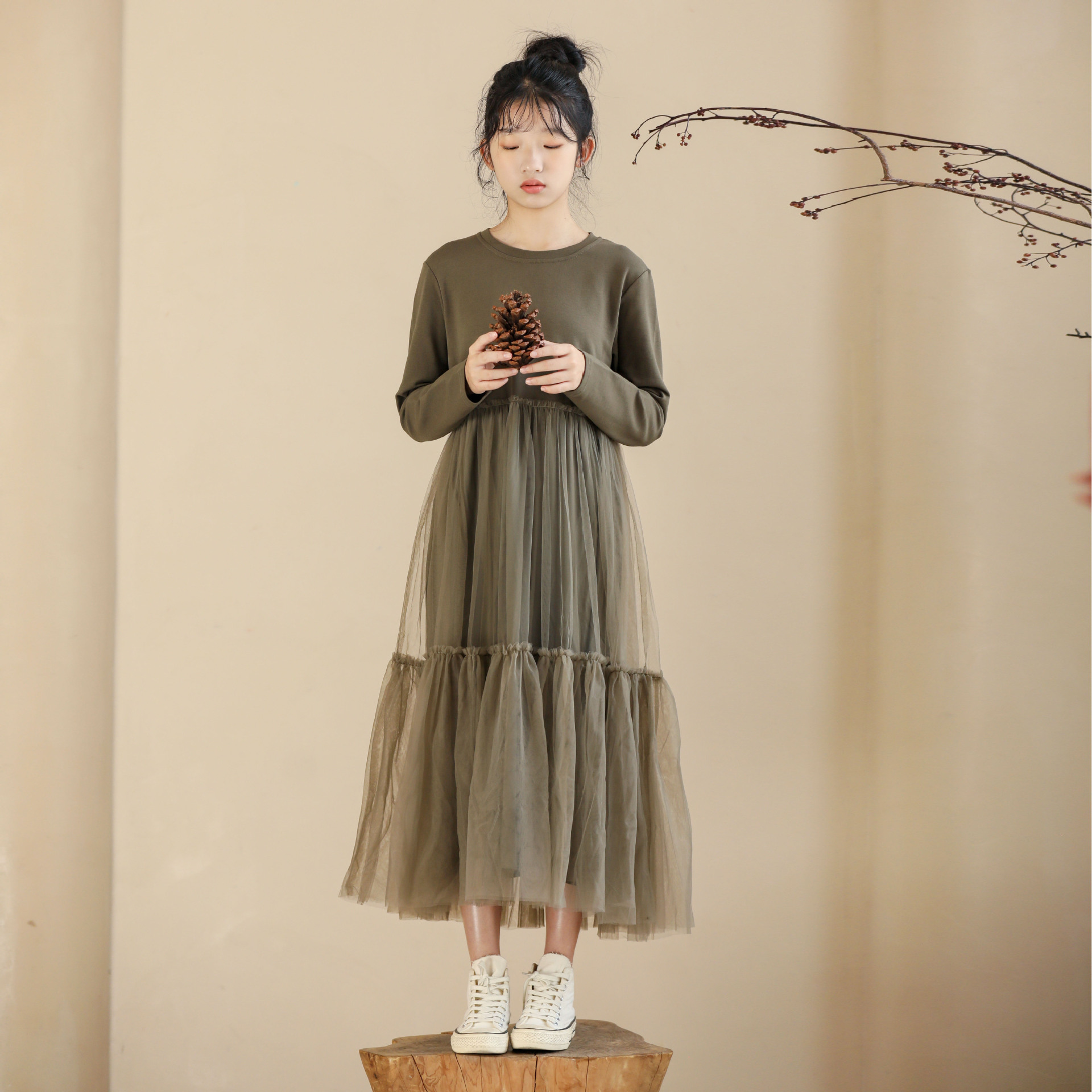 2024 가을 · 겨울 새 메시 바느질 큰 여자 긴 원피스 달콤한 모리 원피스 한국 느슨한 부모-자녀 원피스