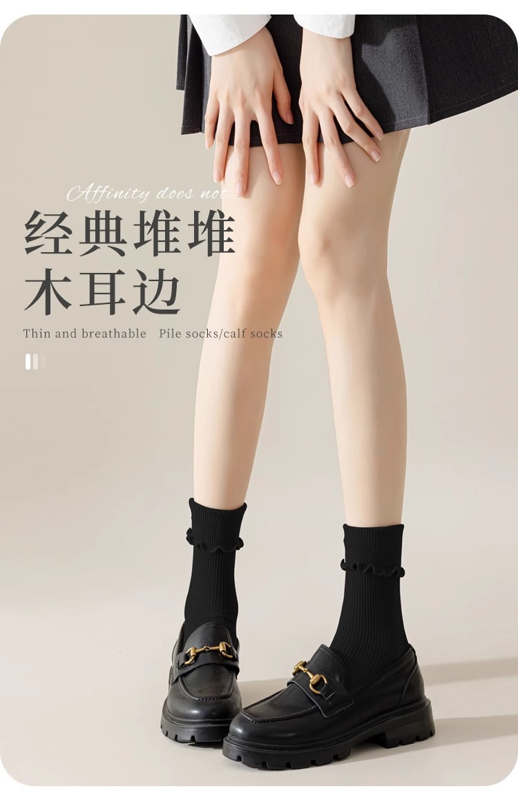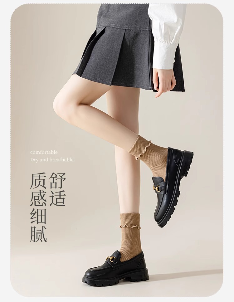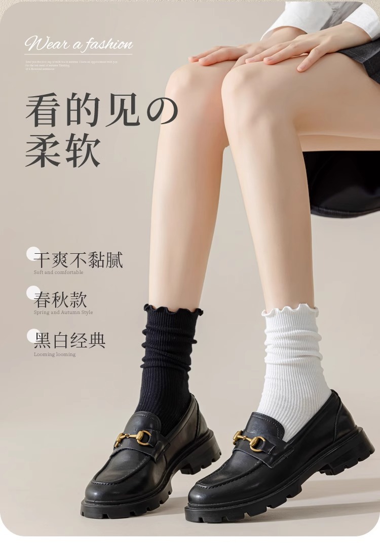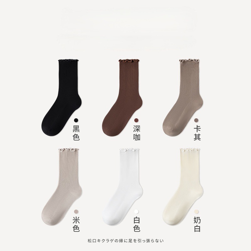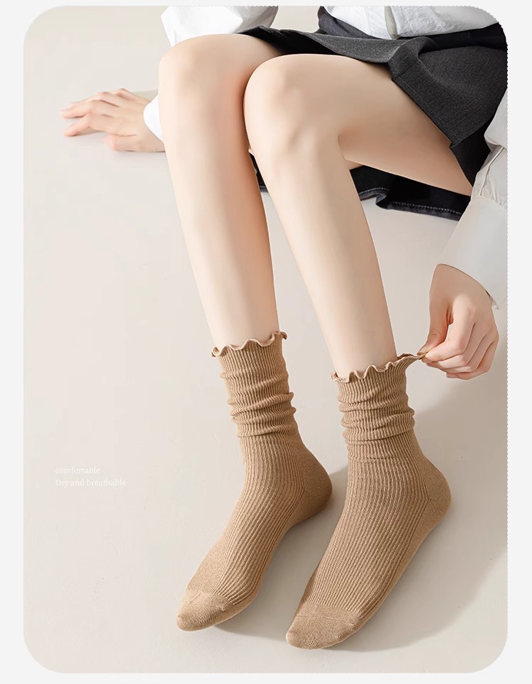 봄여름 여성용 양말, 단색 종아리 중간 면양말, 보풀방지, 느슨한 입, 탈부착 방지 양말, 여아용 다용도 양말스토어 가기