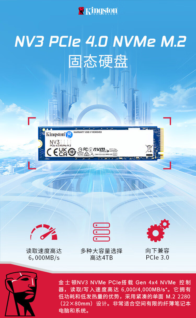 Kingston NV3 노트북 데스크탑 컴퓨터 SSD 솔리드 스테이트 드라이브 M.2 2280NVMe pcie4.0 적합스토어 가기