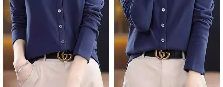 유럽 역 여성의 긴 소매 셔츠 여성의 가을 2024 새로운 디자인 센스 틈새 셔츠 캐주얼 탑스토어 가기
