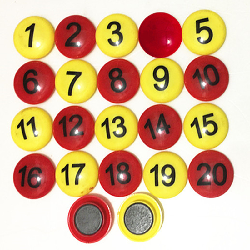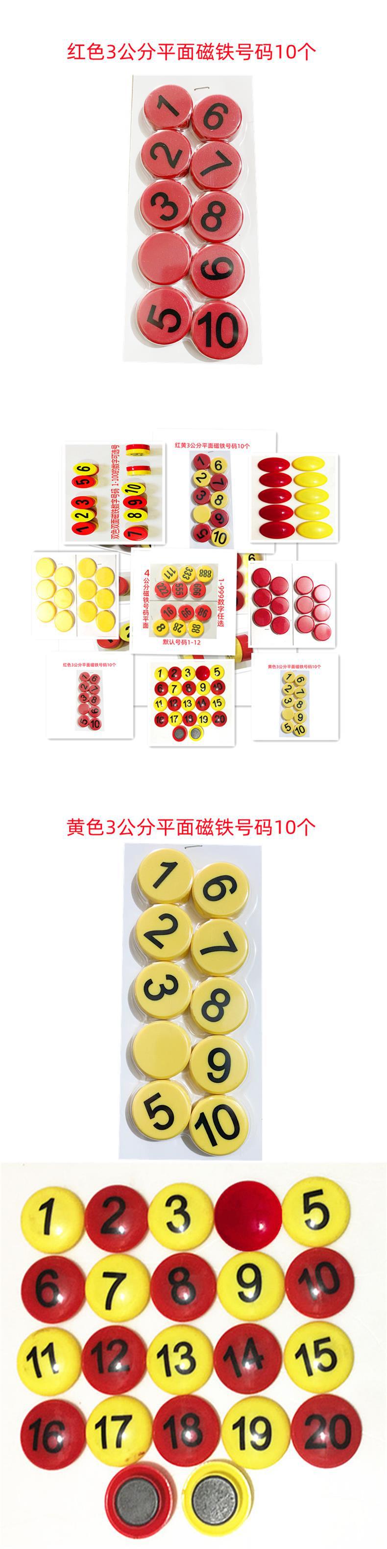 • 빨간색과 노란색 3cm 평면 자석 번호 1-10 옵션 번호
