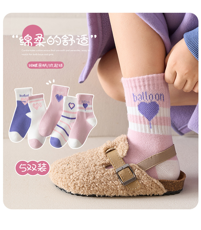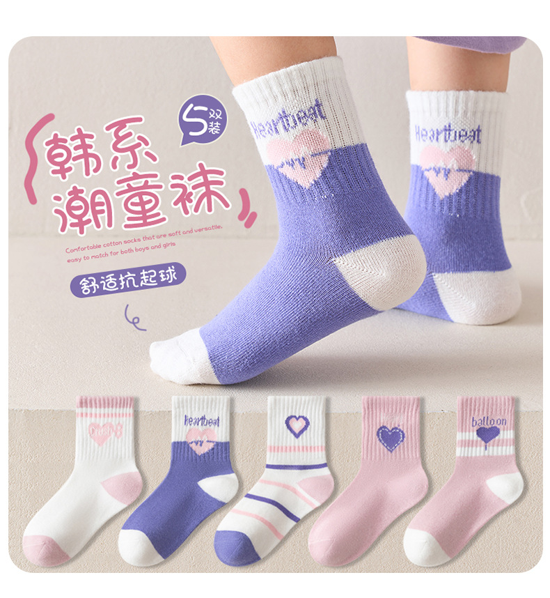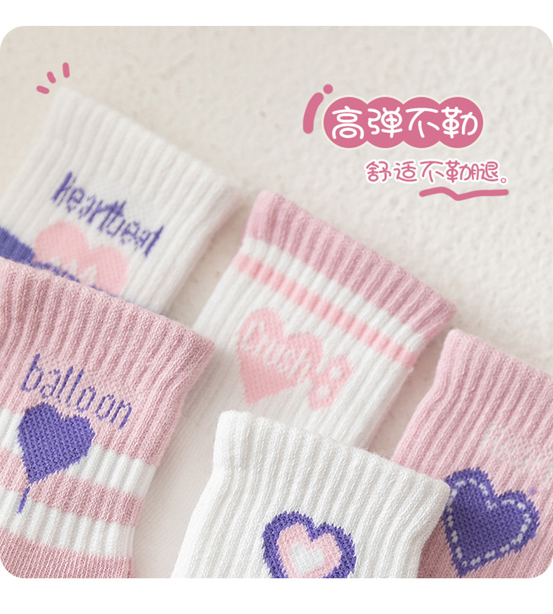 달콤한 대학 스타일 큰 아이 아기 소녀 양말 보라색 사랑 중간 튜브 양말 빗 코튼 양말 스포츠 유행 양말
