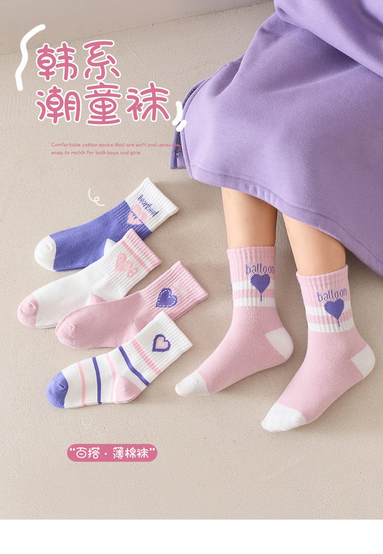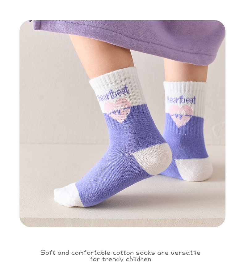 달콤한 대학 스타일 큰 아이 아기 소녀 양말 보라색 사랑 중간 튜브 양말 빗 코튼 양말 스포츠 유행 양말스토어 가기