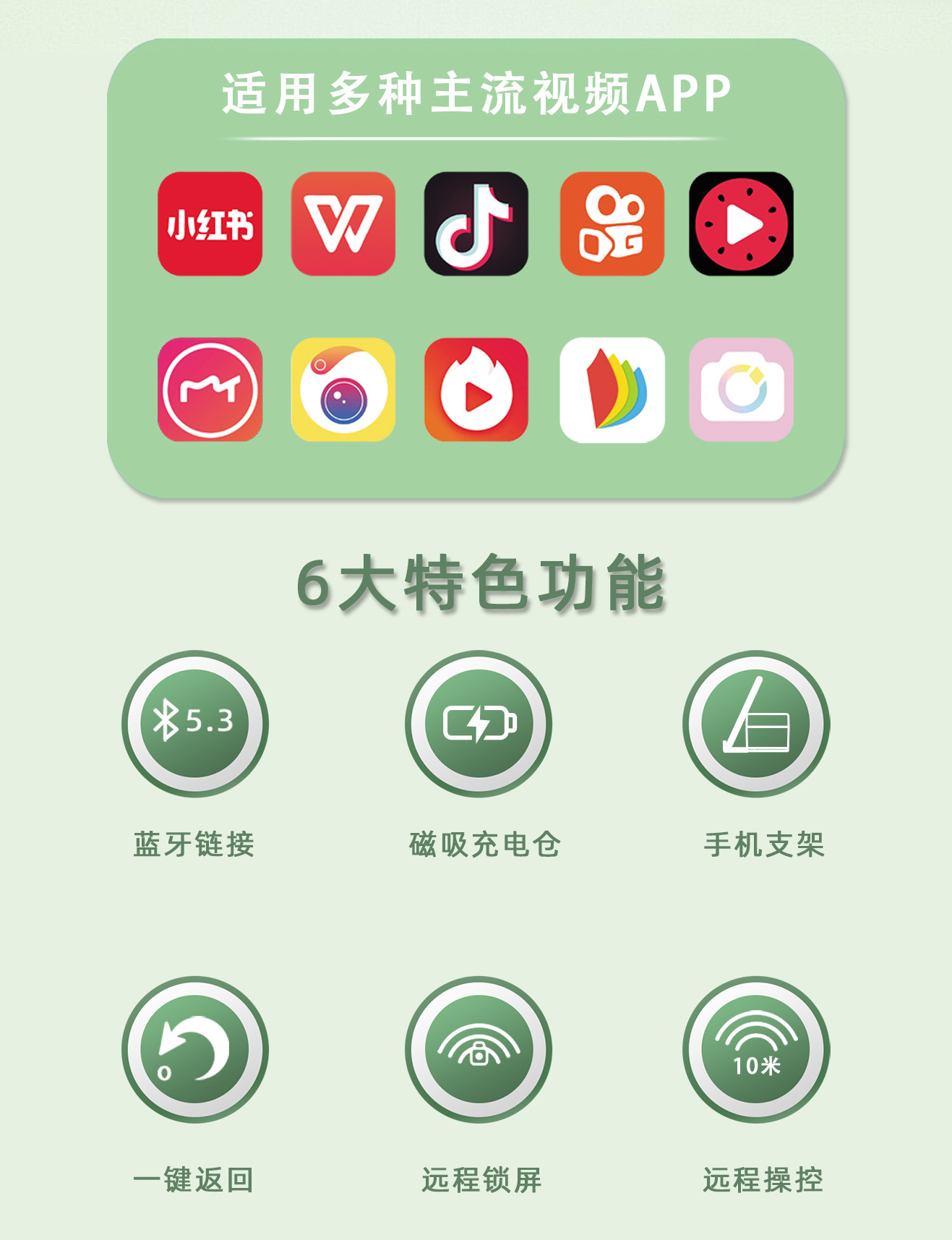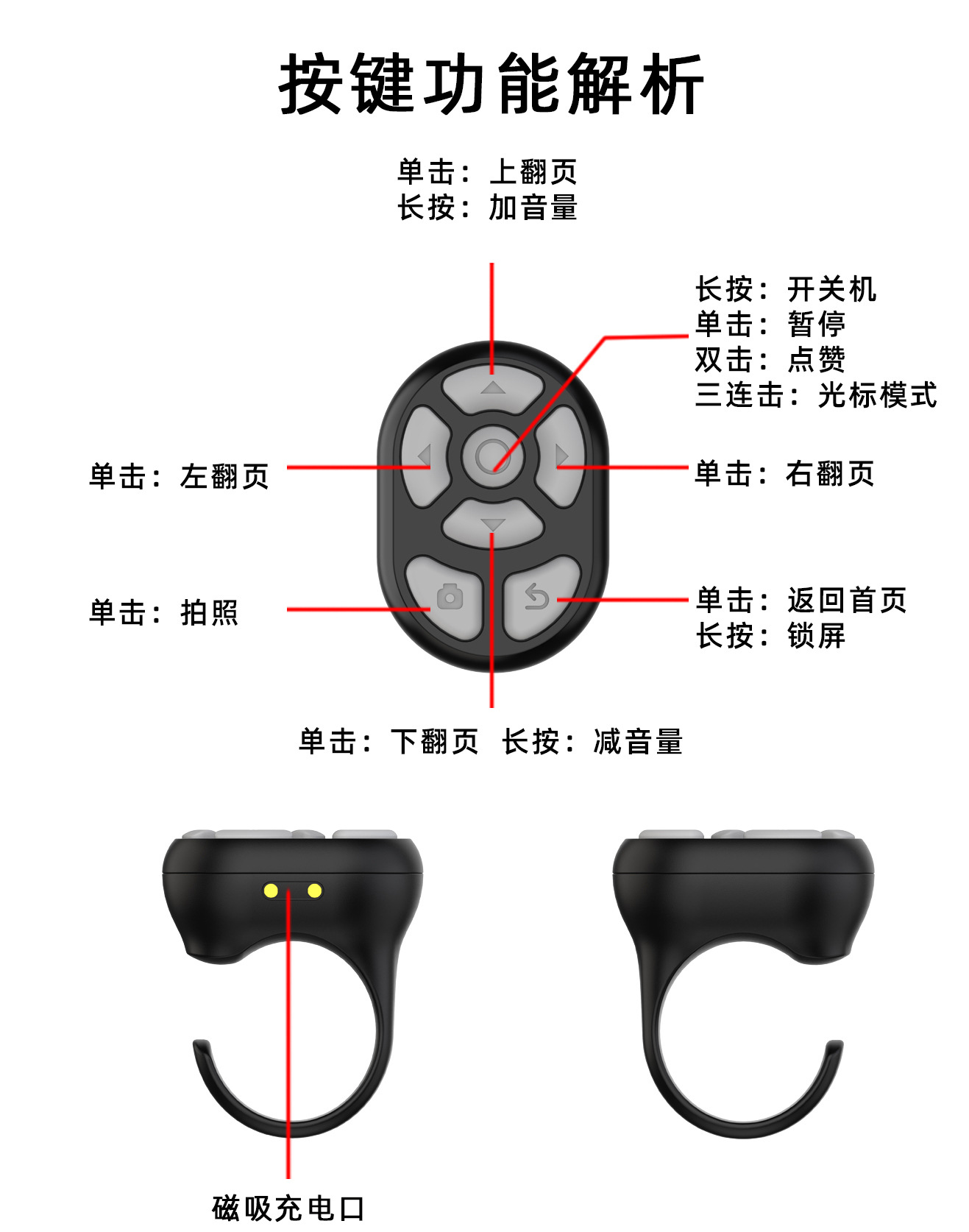 2023 충전식 링 리모컨 휴대폰 페이지 넘김 좋아요 카우스토리 사진 촬영 틱톡 퀵샷 블루투스 4.0스토어 가기