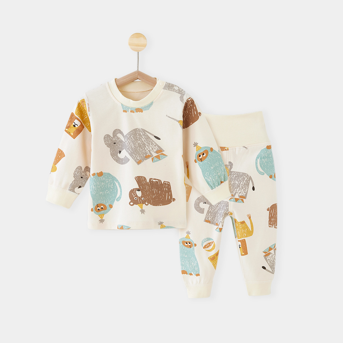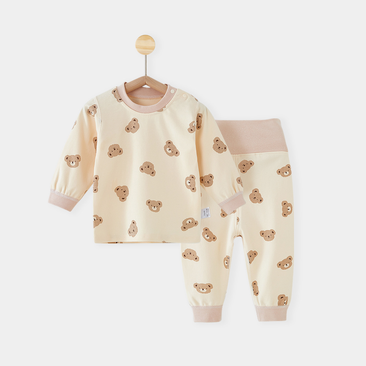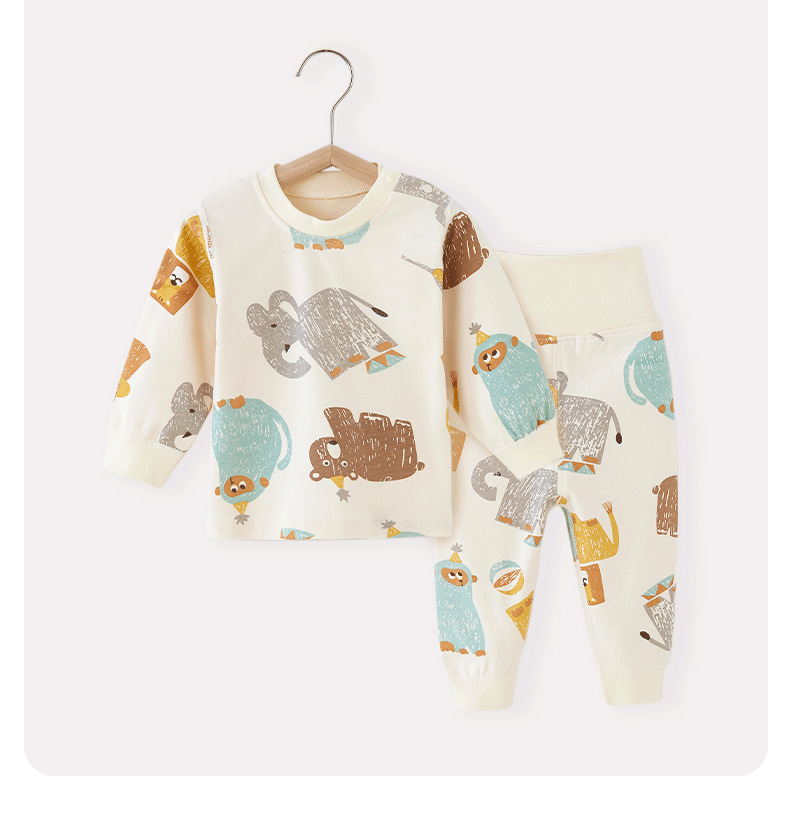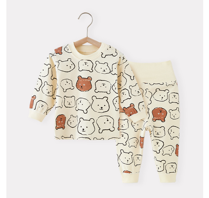 어린이 잠옷 봄 가을 겨울 면 높은 허리 베이스 아기 속옷 세트 분할 아기 가을 옷과 바지 투피스 세트