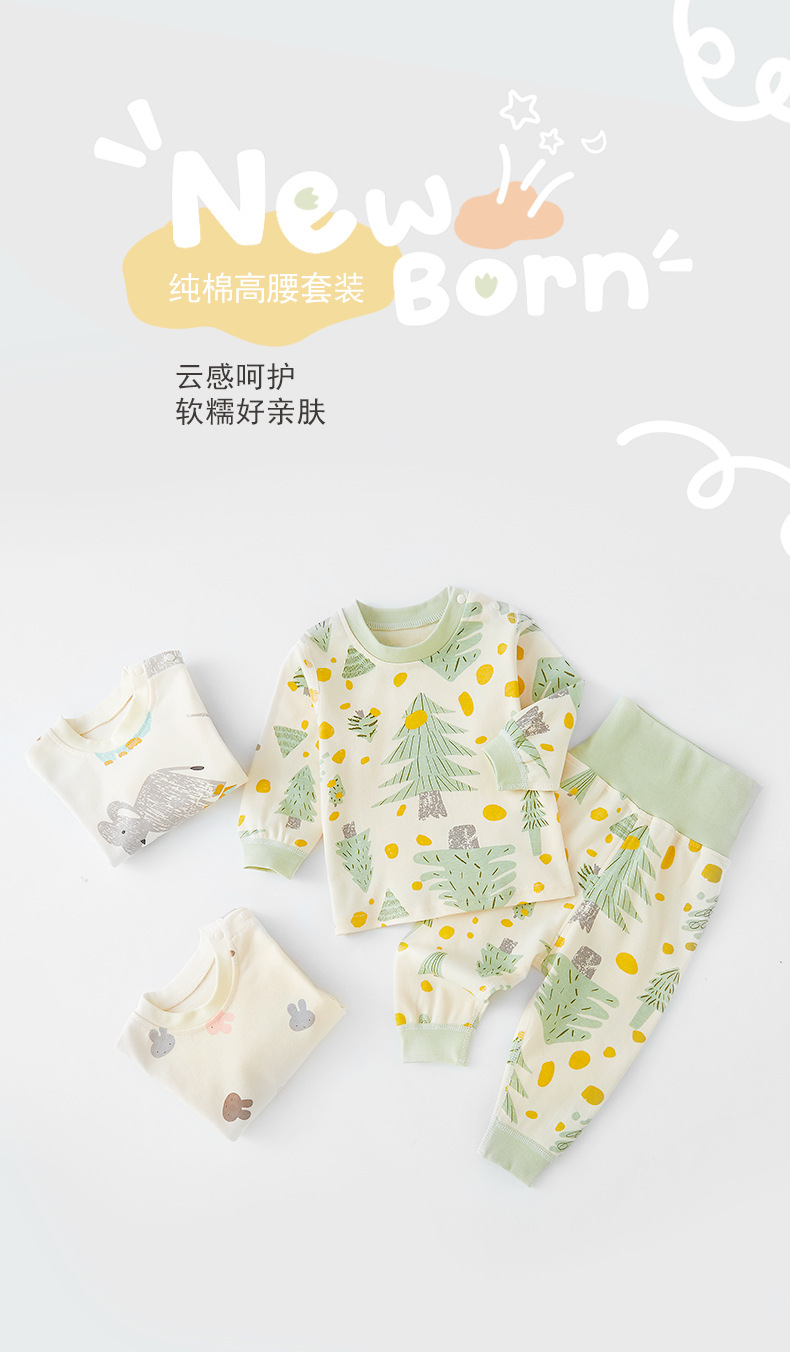 어린이 잠옷 봄 가을 겨울 면 높은 허리 베이스 아기 속옷 세트 분할 아기 가을 옷과 바지 투피스 세트스토어 가기