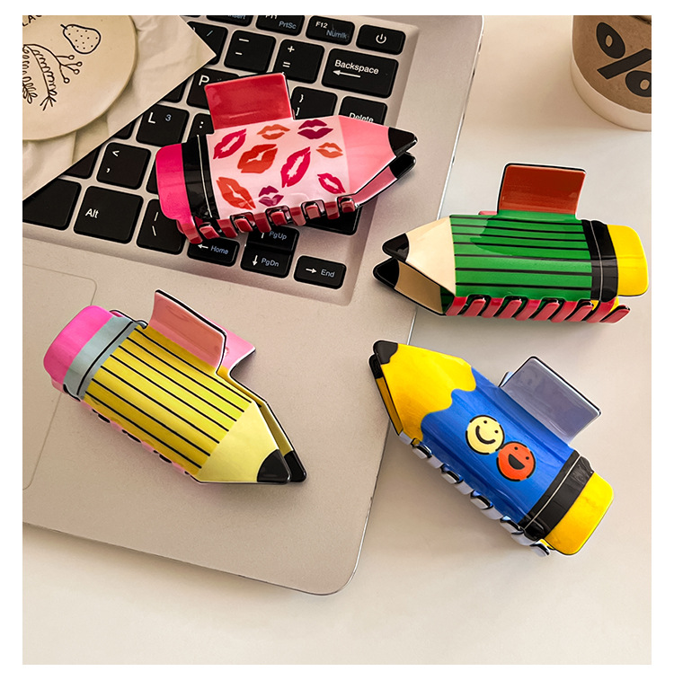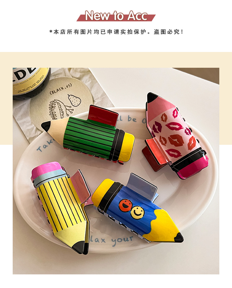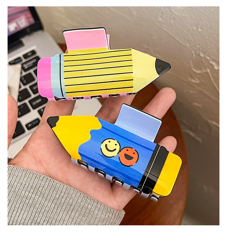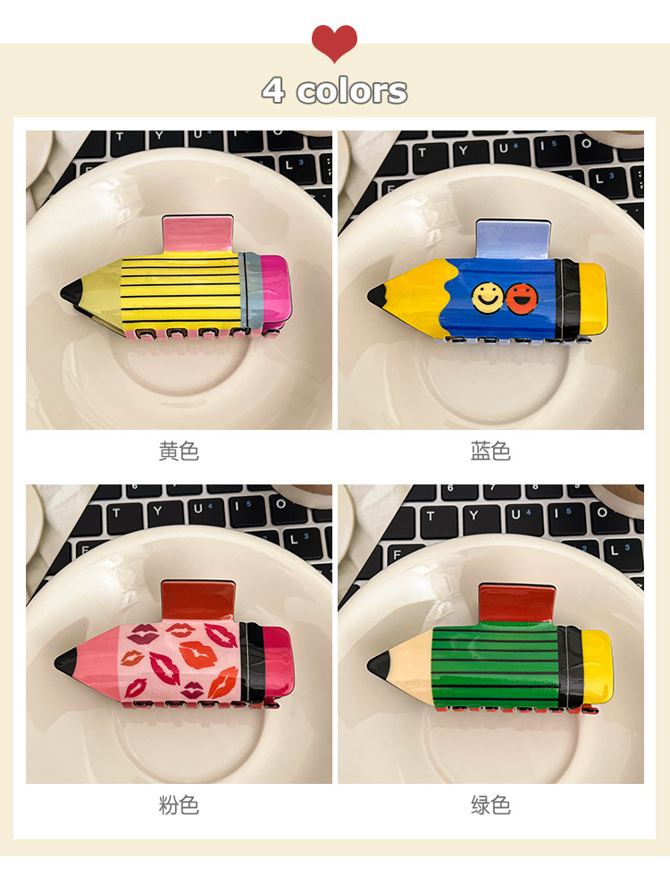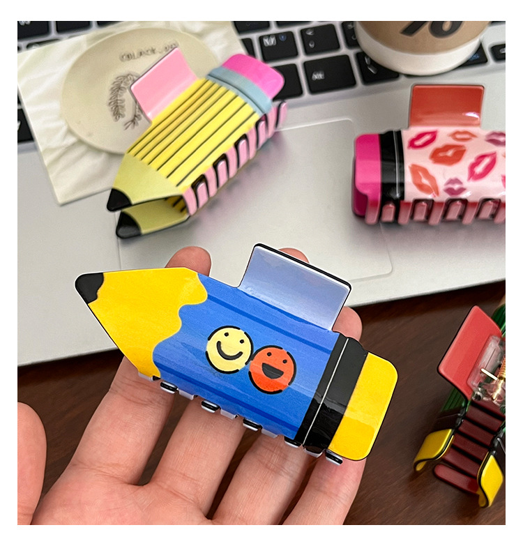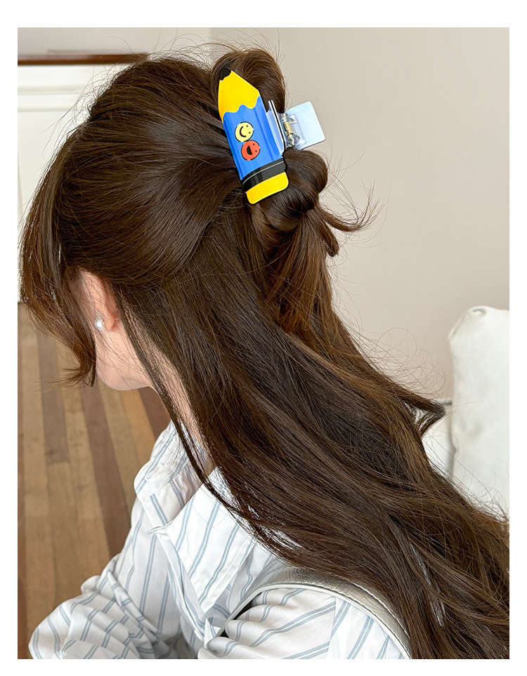 재미있는 만화 연필 헤어핀 여성의 머리 코일 헤어 클립 귀여운 스마일리 상어 클립 학생 헤어핀 헤드웨어스토어 가기