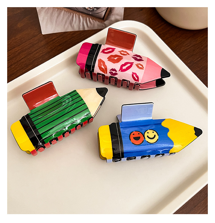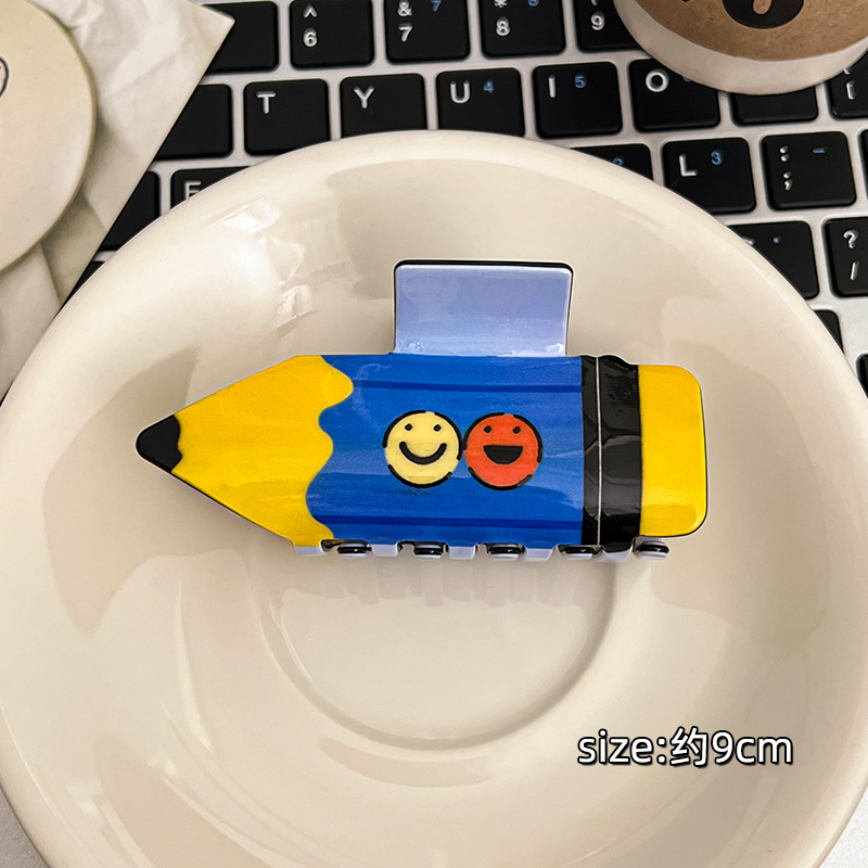 재미있는 만화 연필 헤어핀 여성의 머리 코일 헤어 클립 귀여운 스마일리 상어 클립 학생 헤어핀 헤드웨어